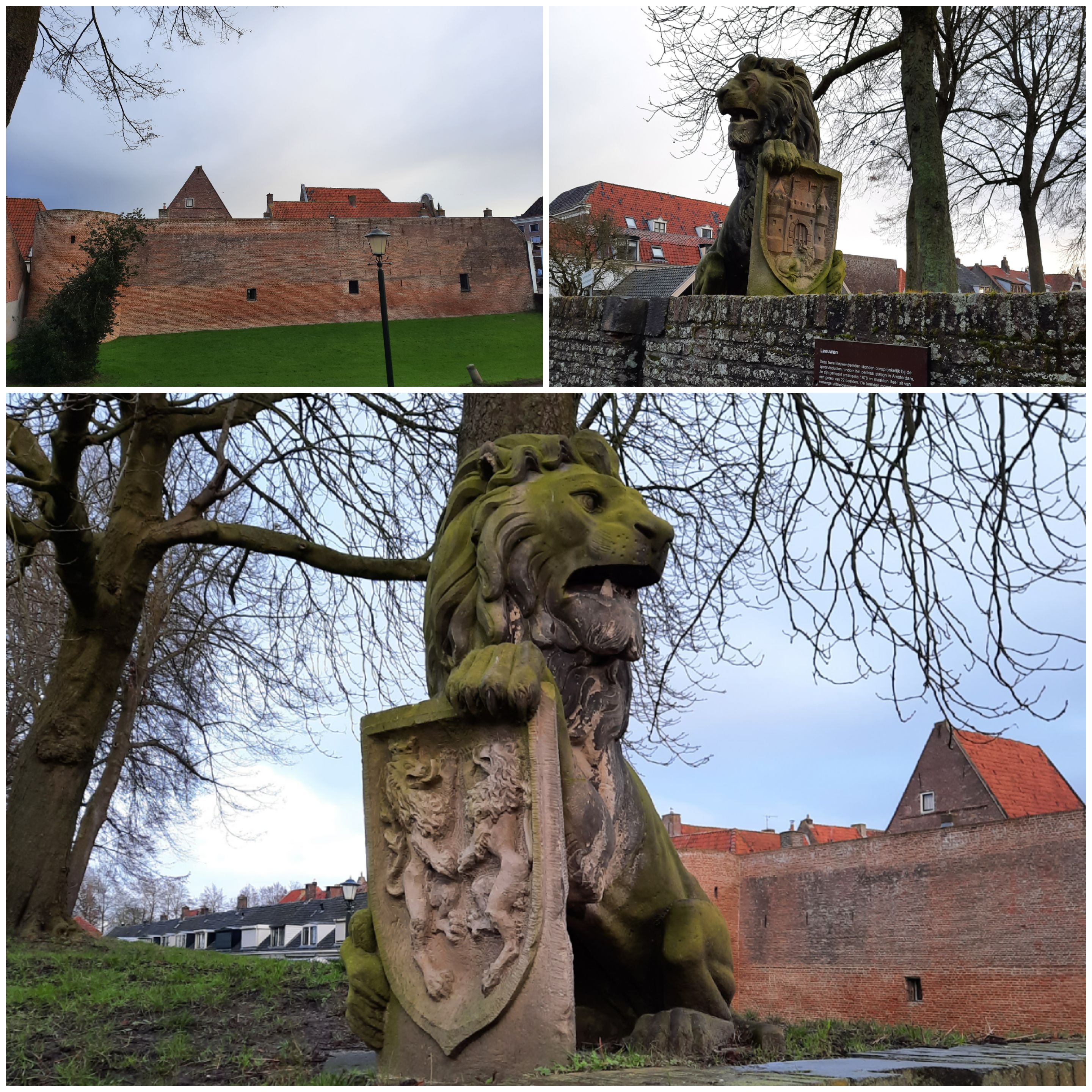 Langs 2 imposante leeuwen -in 1954 aan Elburg geschonken door een Joodse antiquair- loop ik het stadje uit.