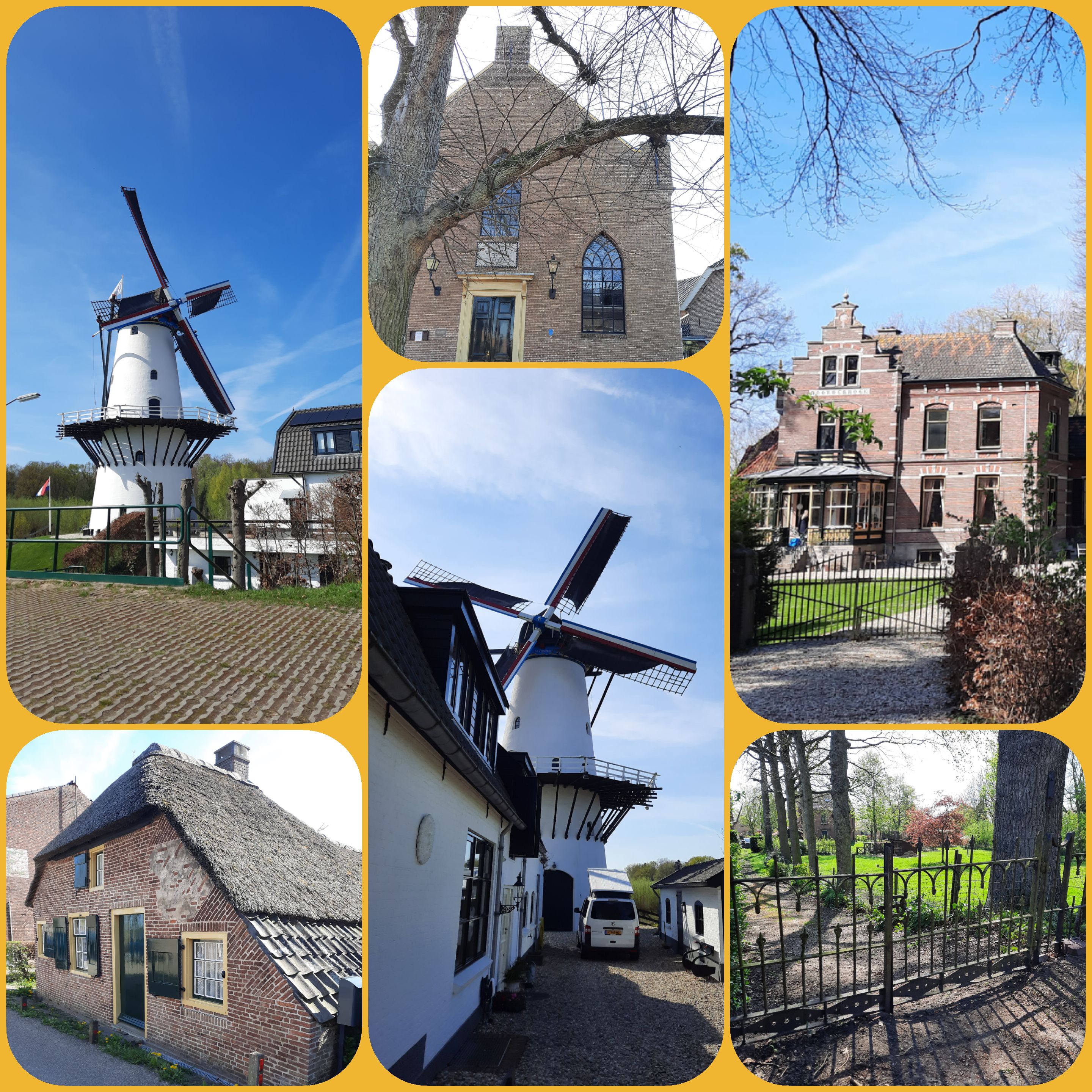 In Beesd geniet ik van een welverdiende pauze. Langs de kerk waar ooit de beroemde staatsman Abraham Kuyper predikant was loop ik naar Rhenoy om de terugweg te aanvaarden.