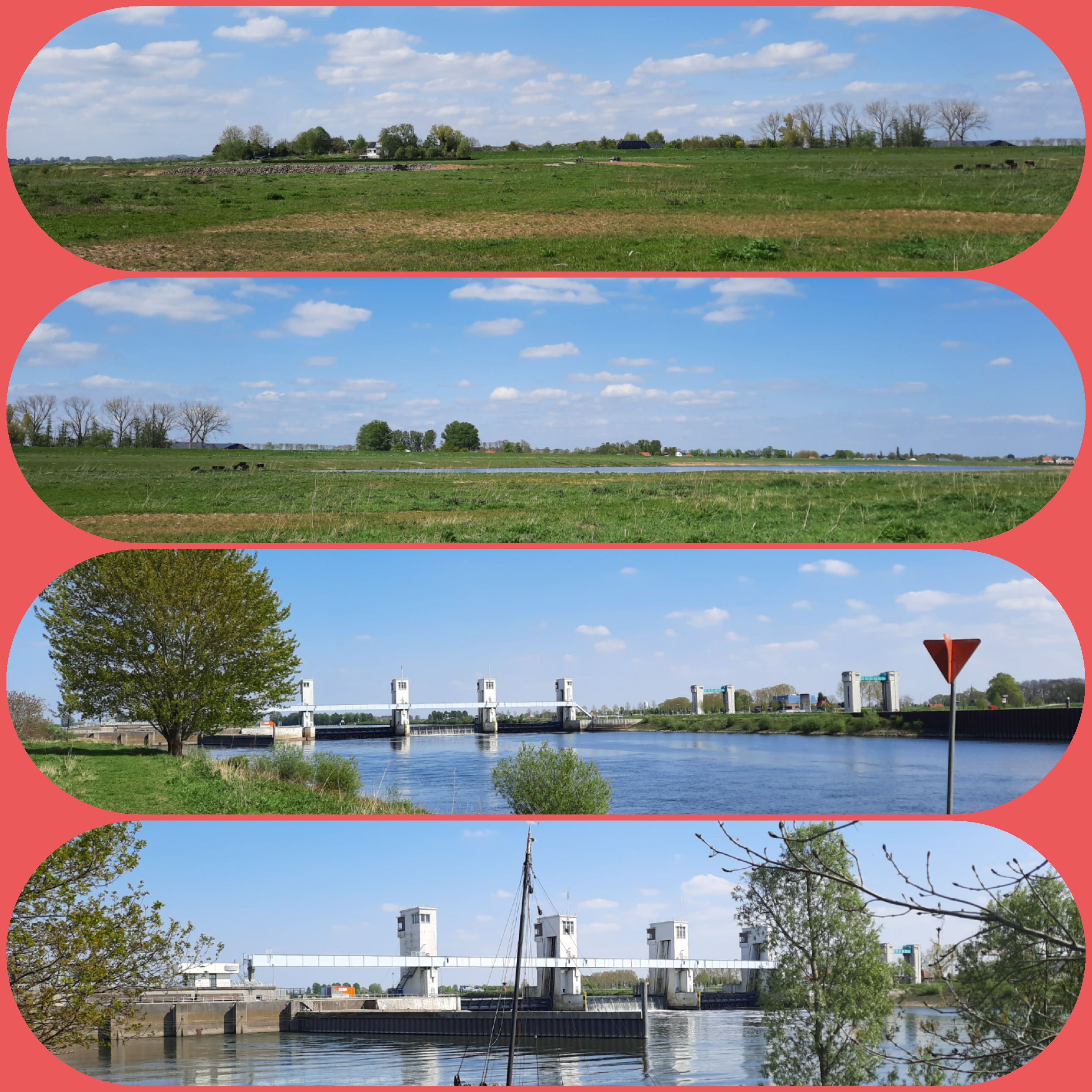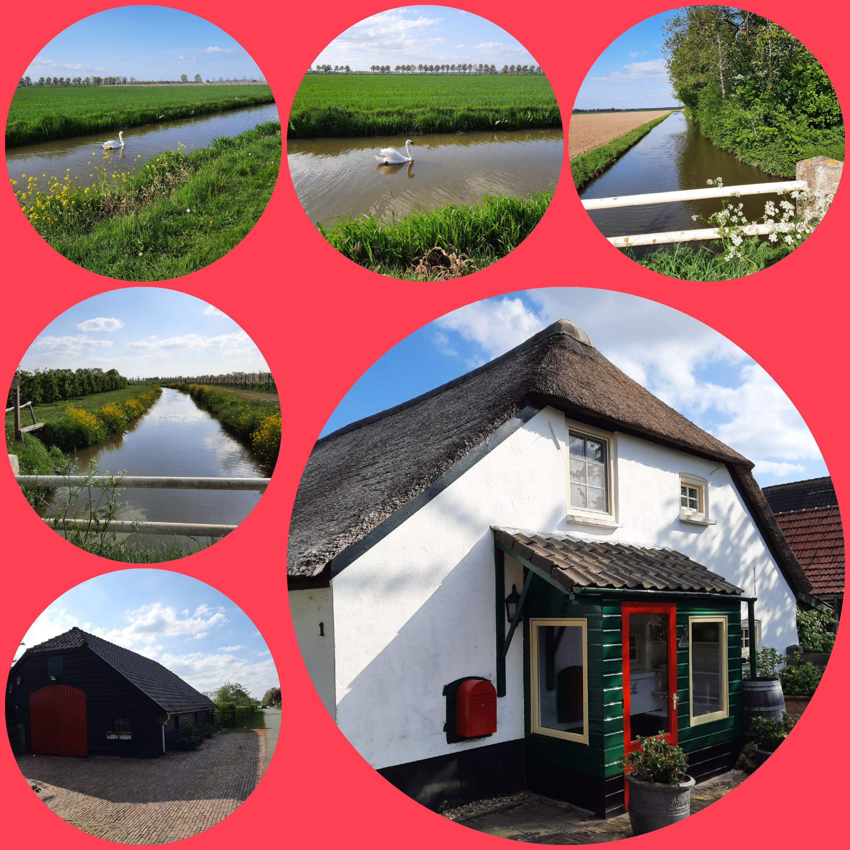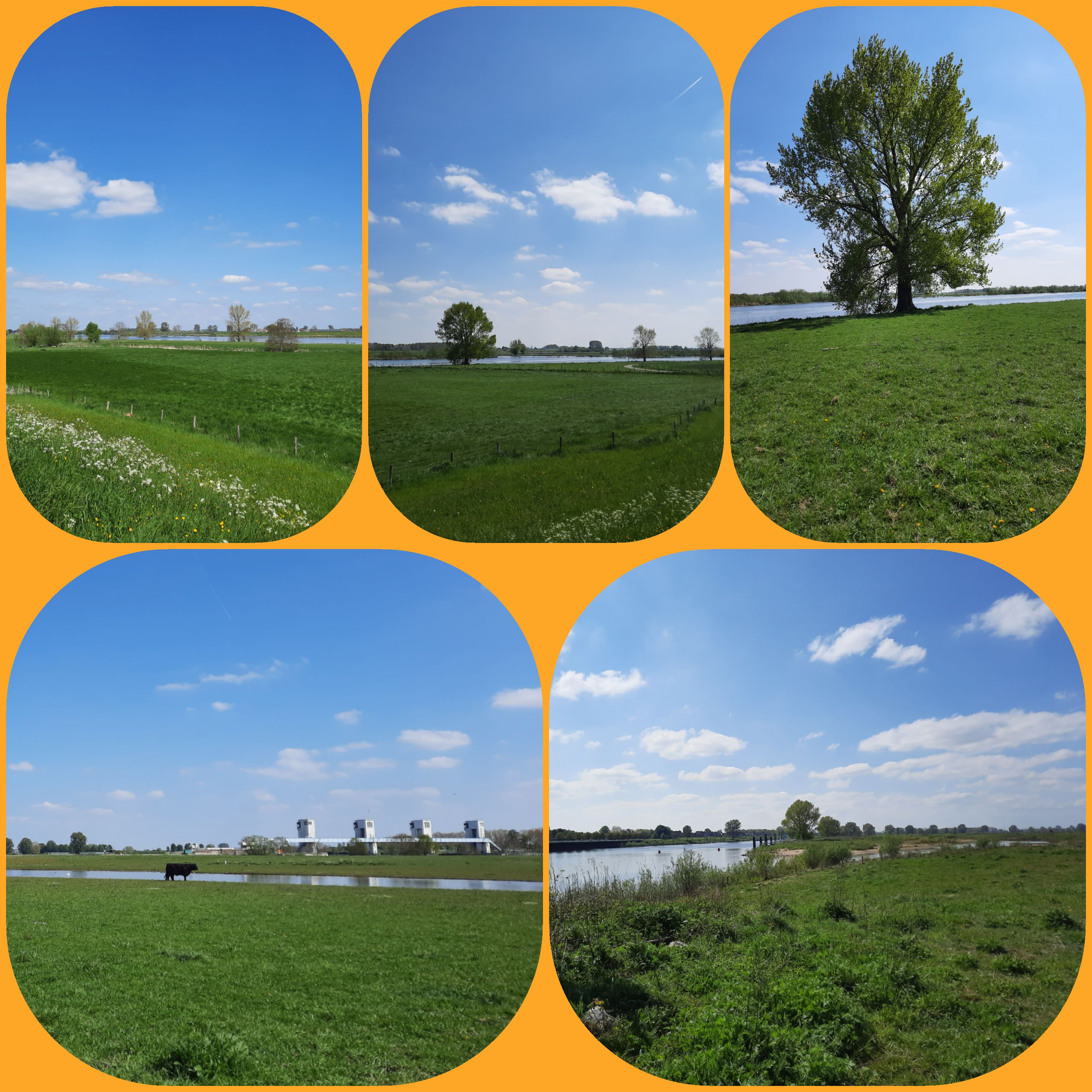 De oranjetompoes is achter de kiezen, het zonnetje schijnt. Kom, ik ga maar eens wandelen. Het is heerlijk weer met een fris windje en prachtige wolkenluchten.
