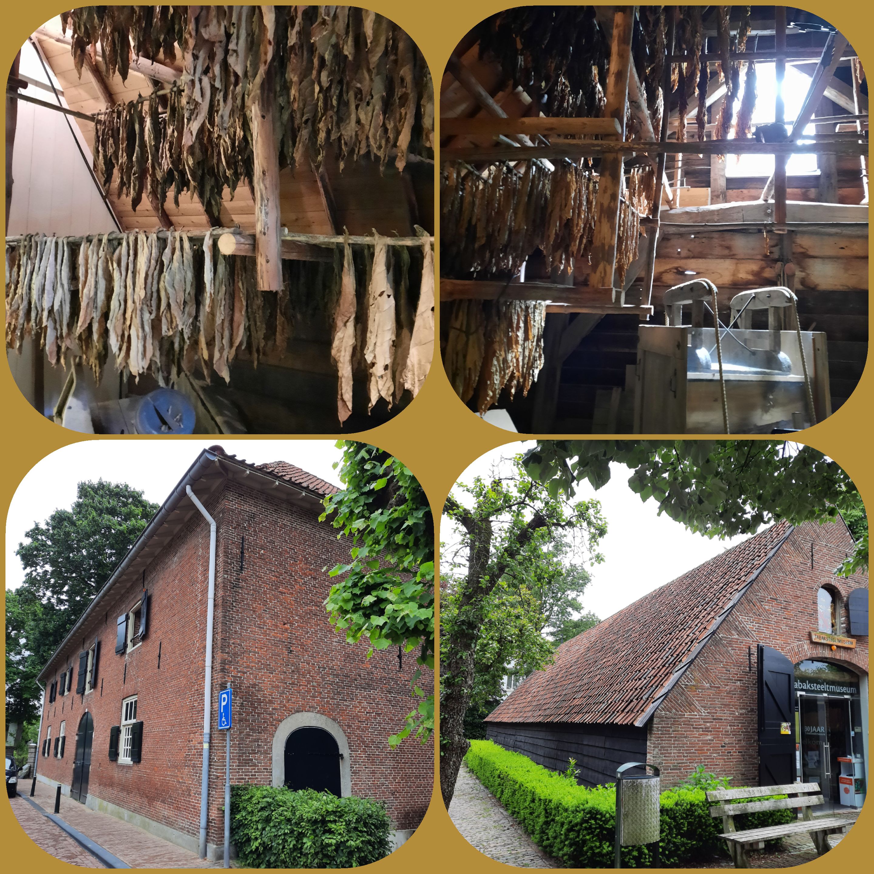 In Amerongen even pauze en een bezoekje aan het tabaksteeltmuseum. Verrassend, want ik wist niet dat er 3 eeuwen tabak is geteeld in Nederland. In 1645 begon het rond Amersfoort en Utrecht, en uiteindelijk werd het tussen Amerongen en Rhenen voor veel mensen de bron van bestaan. De tabak werd gebruikt als pijp-, snuif- en pruimtabak. De lange tabaksschuren met de zwarte houten wanden en de rode pannen herinneren hier nog aan die tijd. En de grote Napoleonsschuur, in opdracht van Napoleon gebouwd als een soort kazerne, die later ook als handelsgebouw voor tabak werd gebruikt.