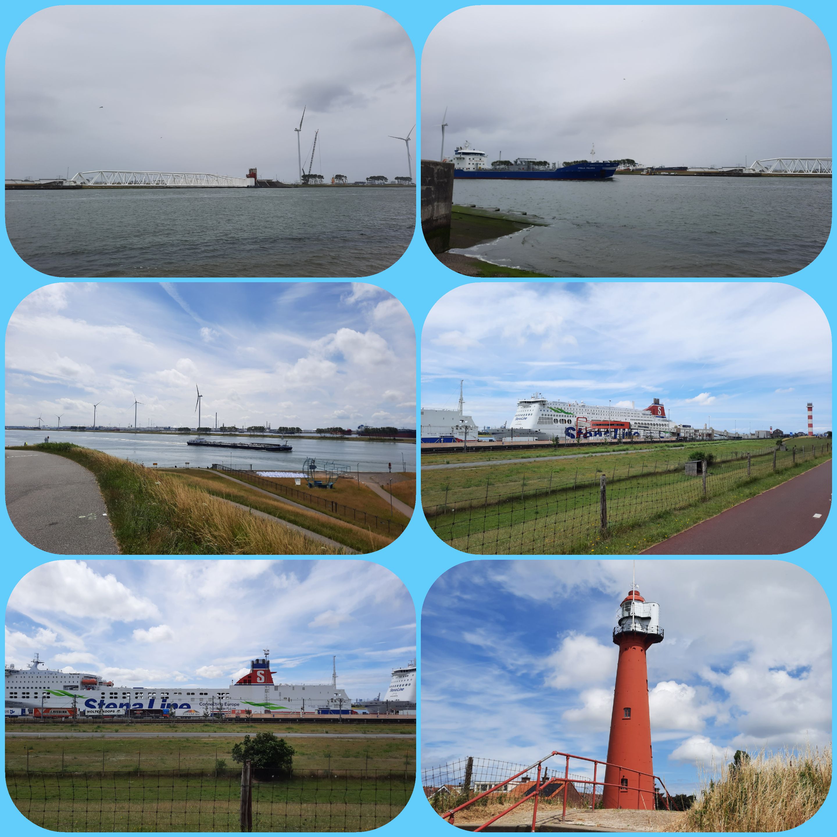 Na de rondleiding schijnt de zon weer en ik besluit door te fietsen naar Hoek van Holland. Lunchen in het zonnetje met zicht op de Nieuwe Waterweg: het kan slechter…