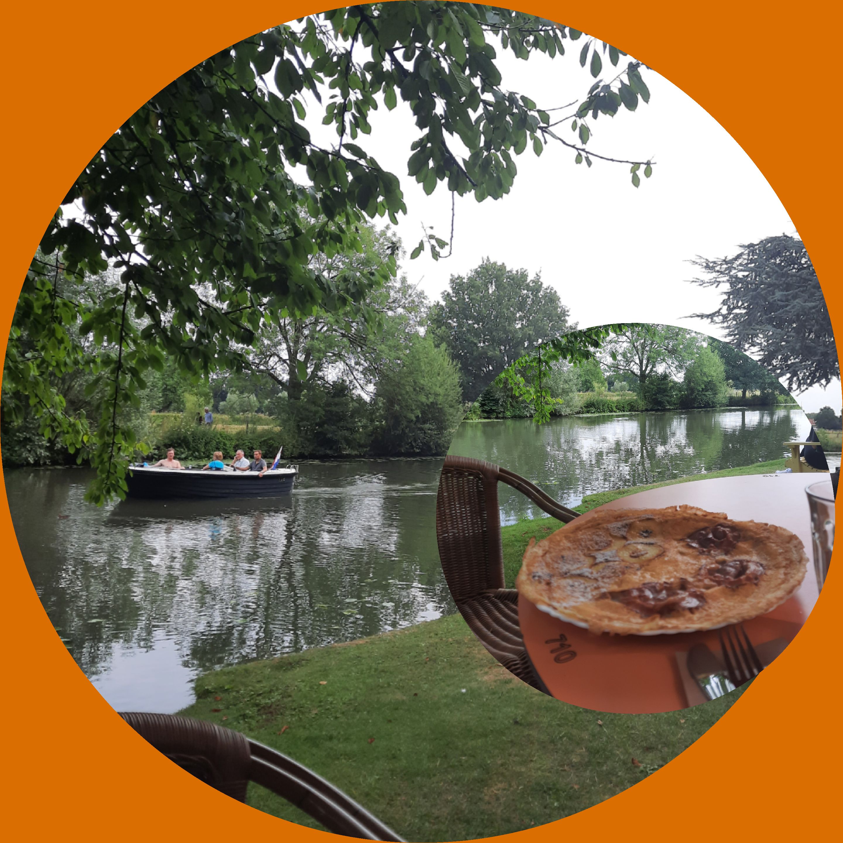 Aan de oever van de Kromme Rijn zit ik aan een pannenkoek. Theehuis Rhijnauwen is even mijn oplaadpunt. Even de tijd om terug te denken aan vandaag.