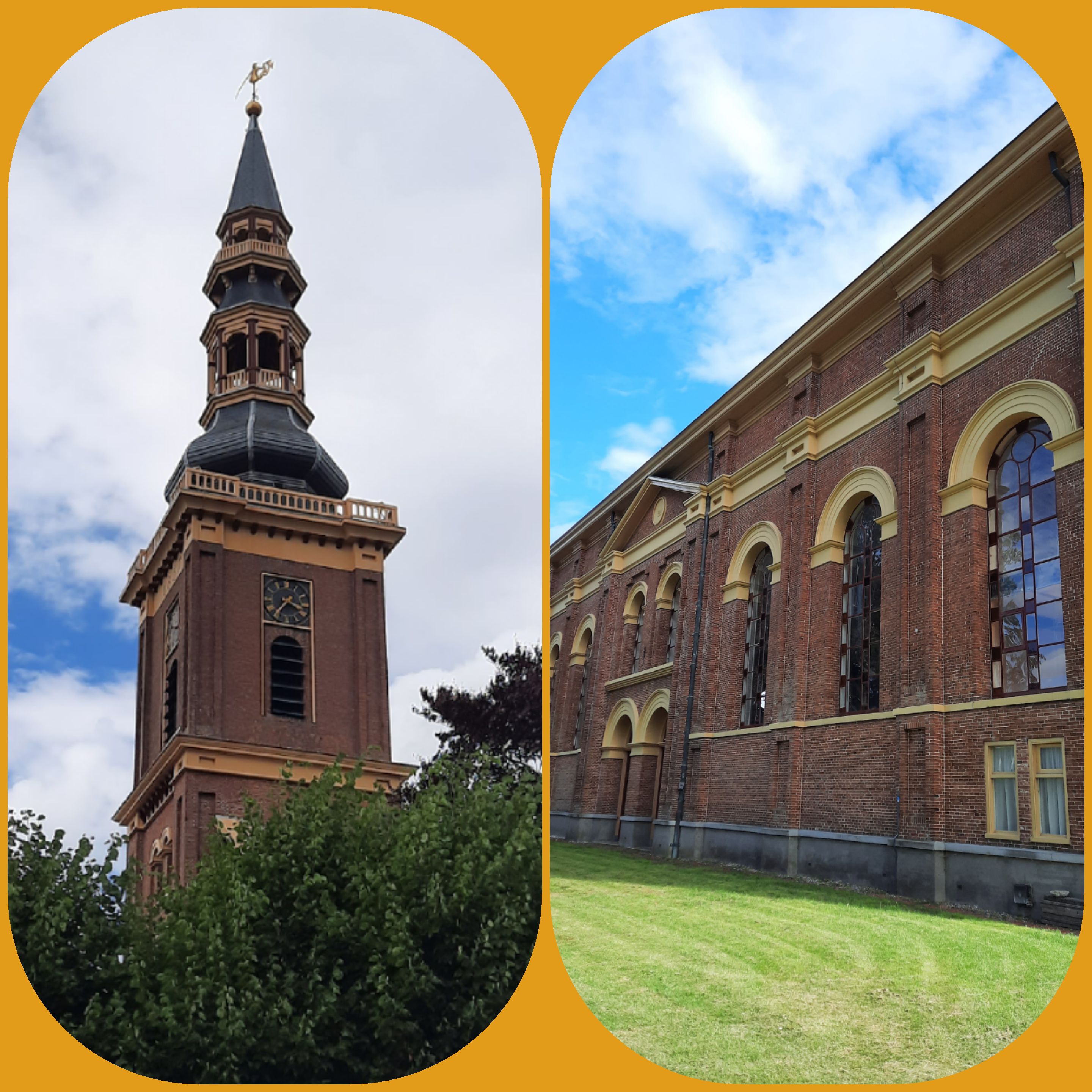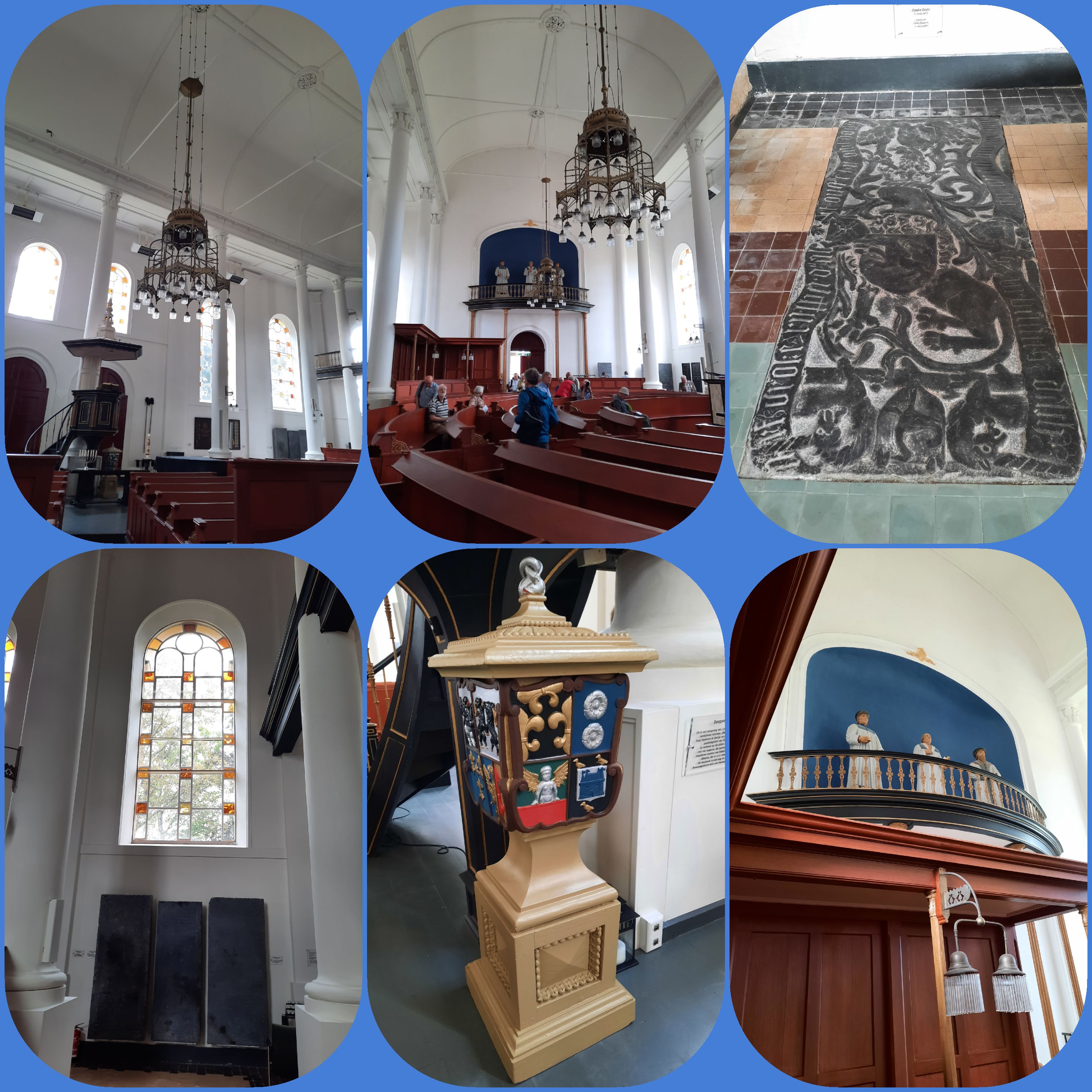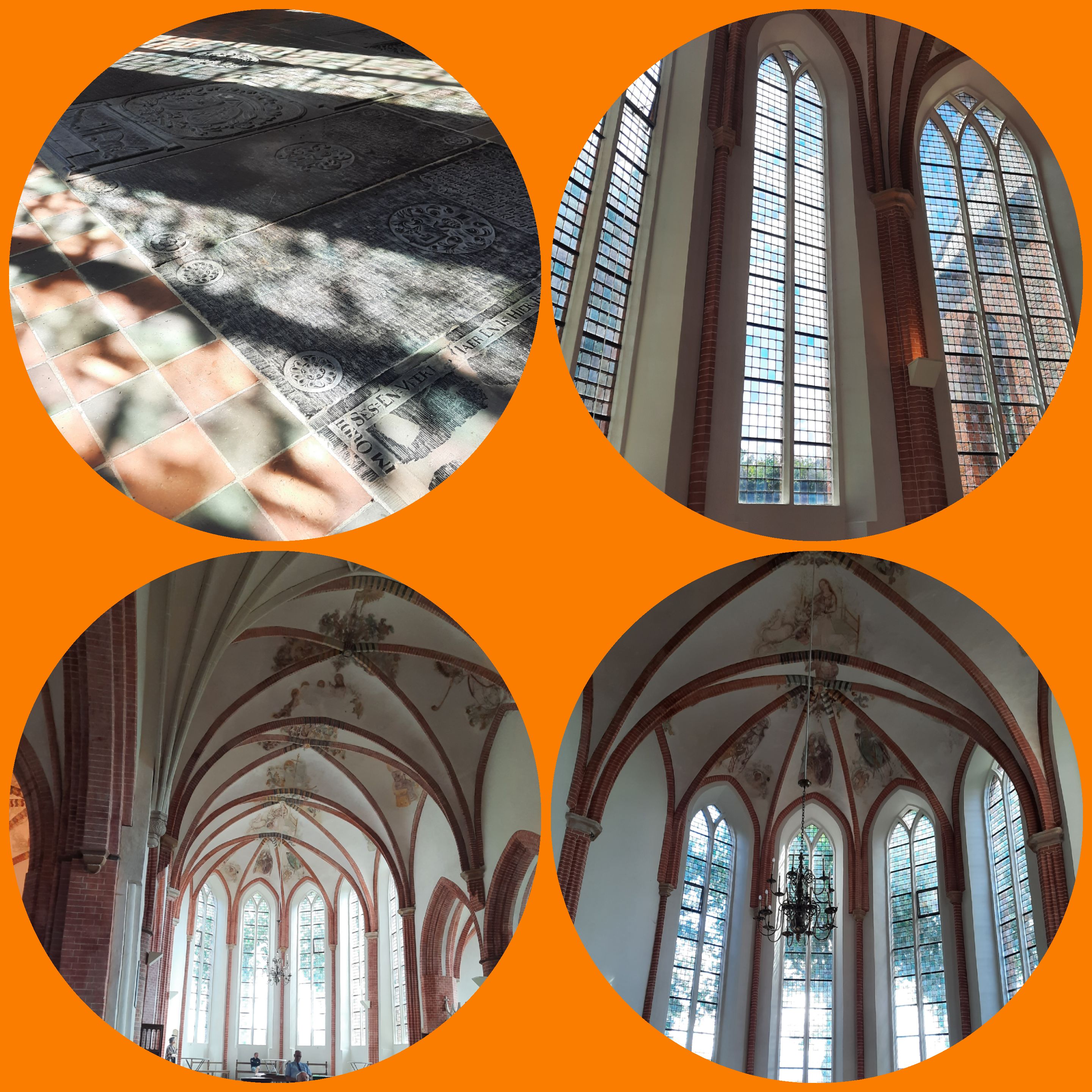 Na de heerlijke lunch naar de Nicolaïkerk van Appingedam. Echt ook weer een bijzondere kerk. De kerk zelf is middeleeuws met de karakteristieke rode bakstenen, de brede niet zo hoge 17e eeuwse toren staat los van de kerk en het schitterende Renaissance stadhuis staat er vlak naast. Prachtig ensemble.