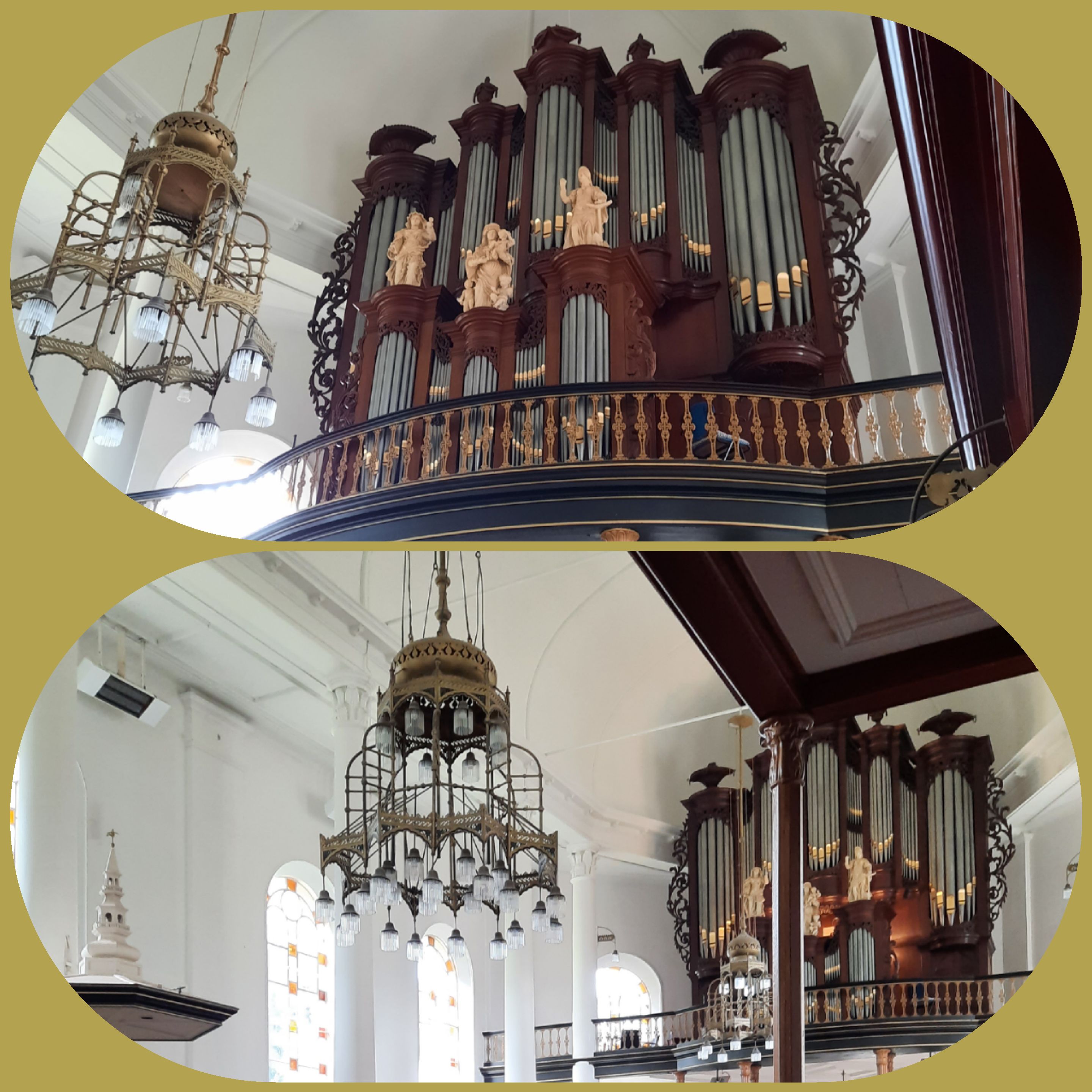 Het orgel uit de gesloopte kerk bleef en werd opnieuw geplaatst, wel een beetje raar met een balustrade voor het orgel langs. Sietze speelt voor ons Bach en Gade en daarna een improvisatie over Kom laat ons voortgaan, kindren. Kippenvel…