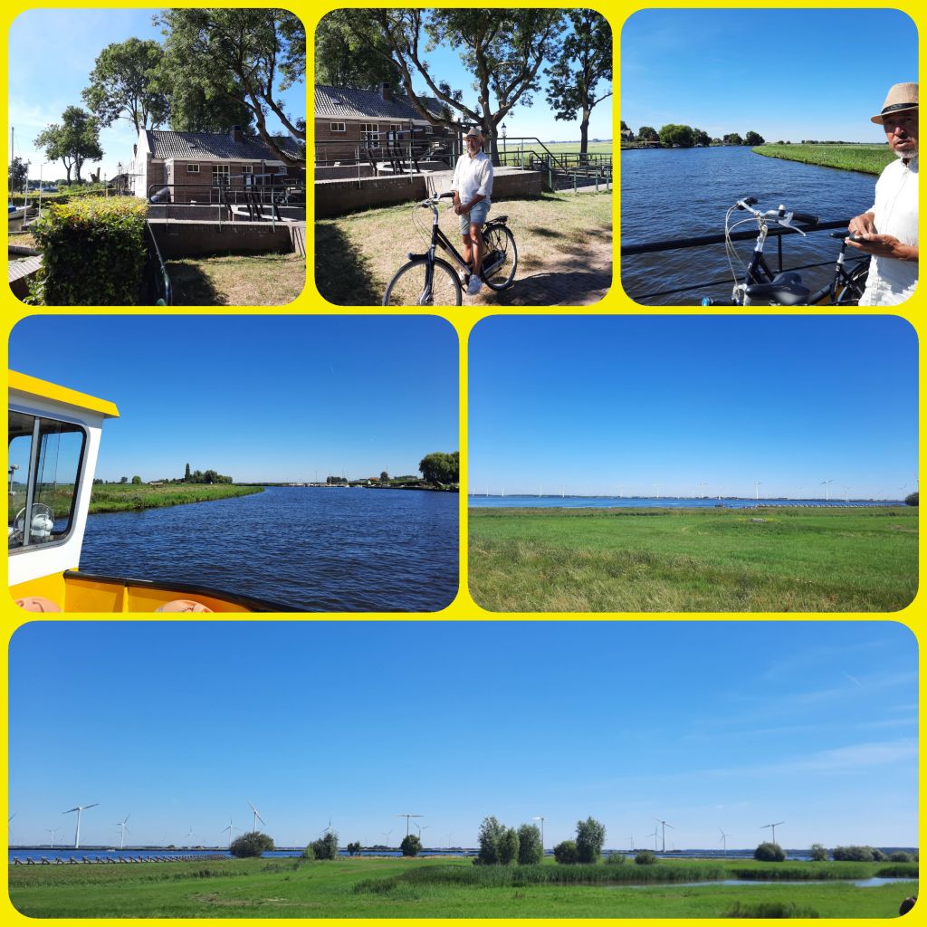 In Eemnes stappen we op de fiets en door de Eempolder gaat het op de pittoreske Eemnessersluis aan. De pontbaas bij Eemdijk heeft het maar druk. Net als hij wil overvaren komt er op hoge snelheid een plezierjachtje aan over de Eem. Het lijkt alsof de schipper nog voor de pont langs wil. Maar gelukkig, hij houdt in op het laatste moment.