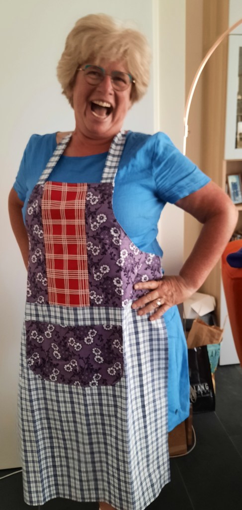 De klederdracht is vrijwel uit het straatbeeld verdwenen. Maar ik herinner het me nog zo goed van vroeger. Daarom koop ik een schort van Spakenburger stofjes.