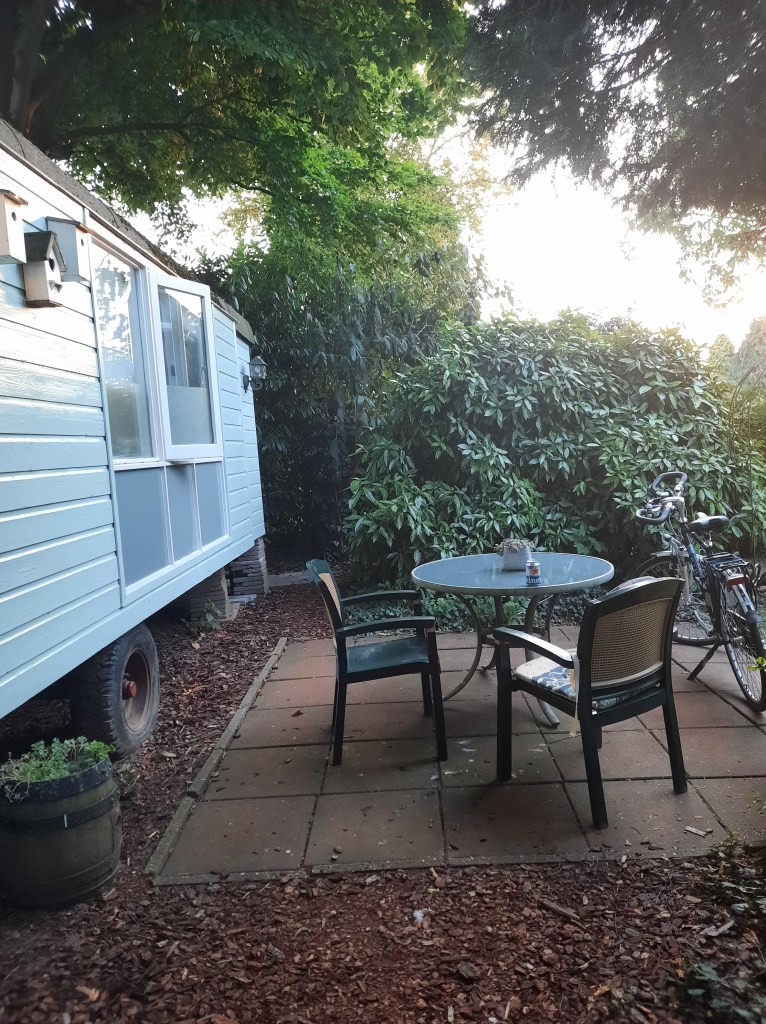 Terwijl ik dit zit te schrijven, zit ik fris gedoucht op het terrasje voor de pipowagen waar ik mag overnachten. Met een 0.0 biertje terwijl het zonnetje onder gaat.