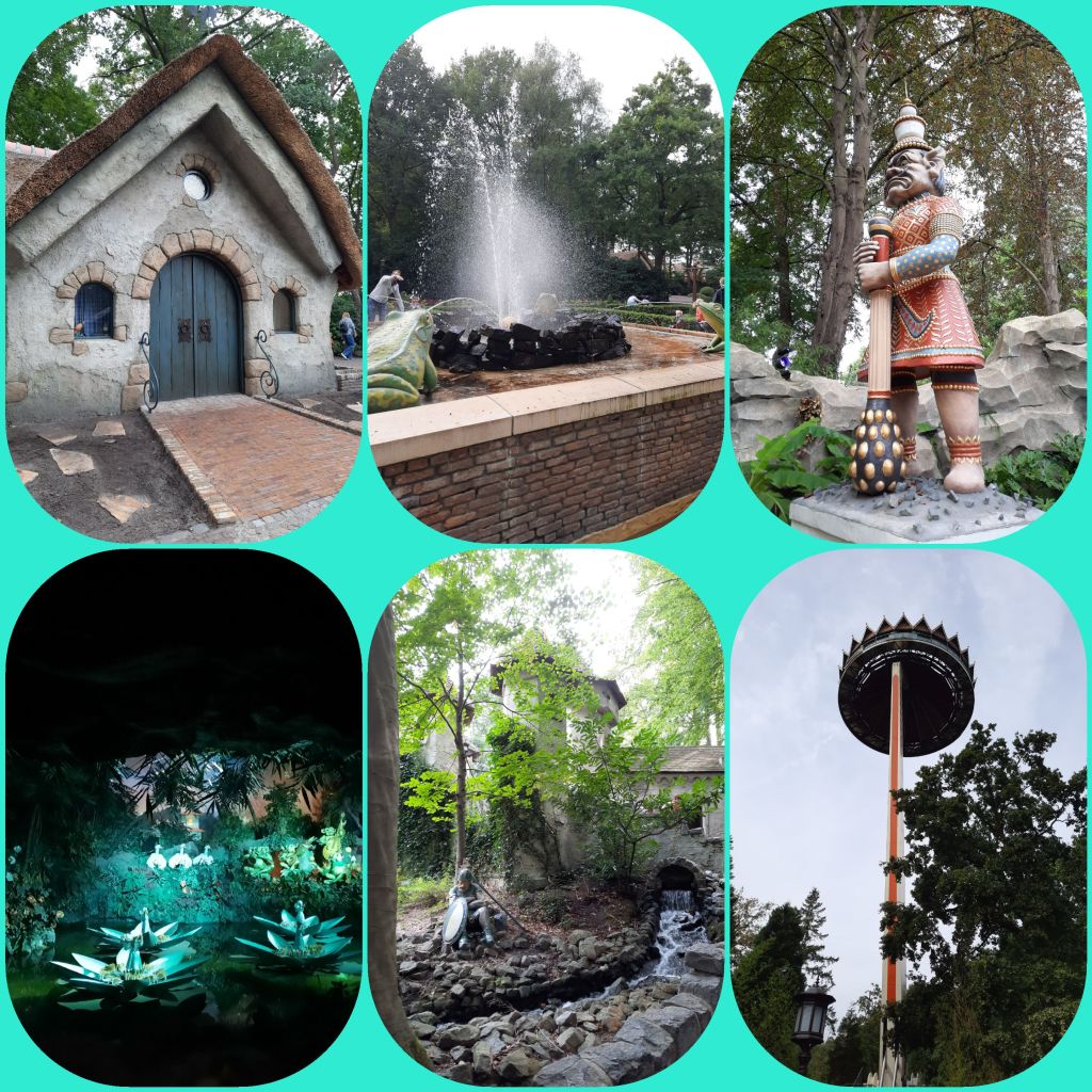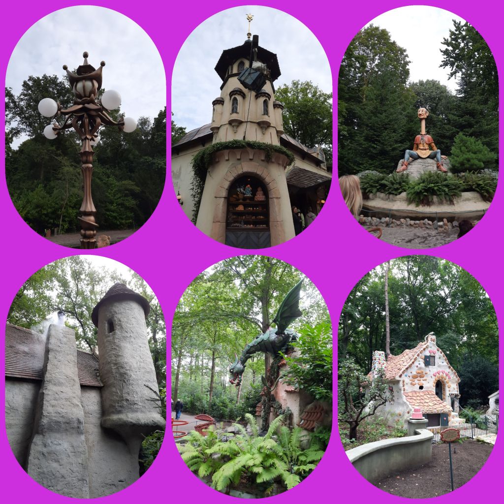 En ik heb er echt geen spijt van. Want pret hebben we zeker gehad. Van de sprookjes naar ontwerpen van Anton Pieck tot de Gondola, heel oubollig ronddrijven in kabelgetrokken bootjes, van het pannenkoekenrestaurant waar alles bewoog tot aan de muzikale lichtshow. We hebben genoten! En nee, geen achtbaan, alsjeblieft niet, zeg! Wel de wildwaterbaan, die is geweldig! En in de Pagode, heel hoog boven het park met een prachtig uitzicht.