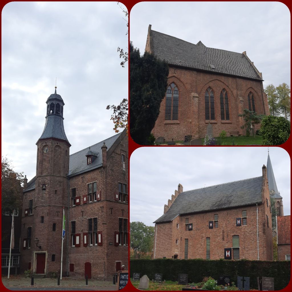 Vanuit Kilder lopen we om Zeddam heen naar ‘s-Heerenberg. Langs de munt, het oude stadhuis en natuurlijk het beeldje van Mechteld ten Ham, de vrouw die in 1605 als heks verbrand werd. Een gruwelijk verhaal… We nemen een kijkje in de Sint-Pancratiuskerk uit eind 19e eeuw en dan in de kerk uit 1612, die eigenlijk een halve kerk is.