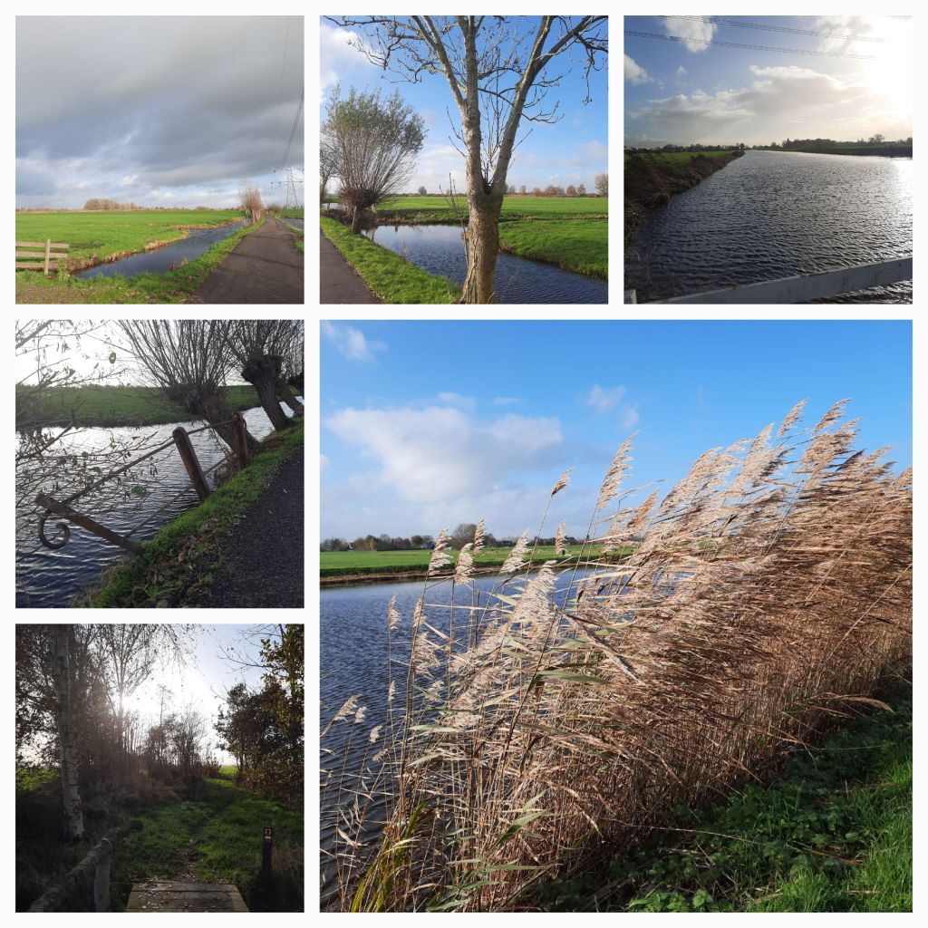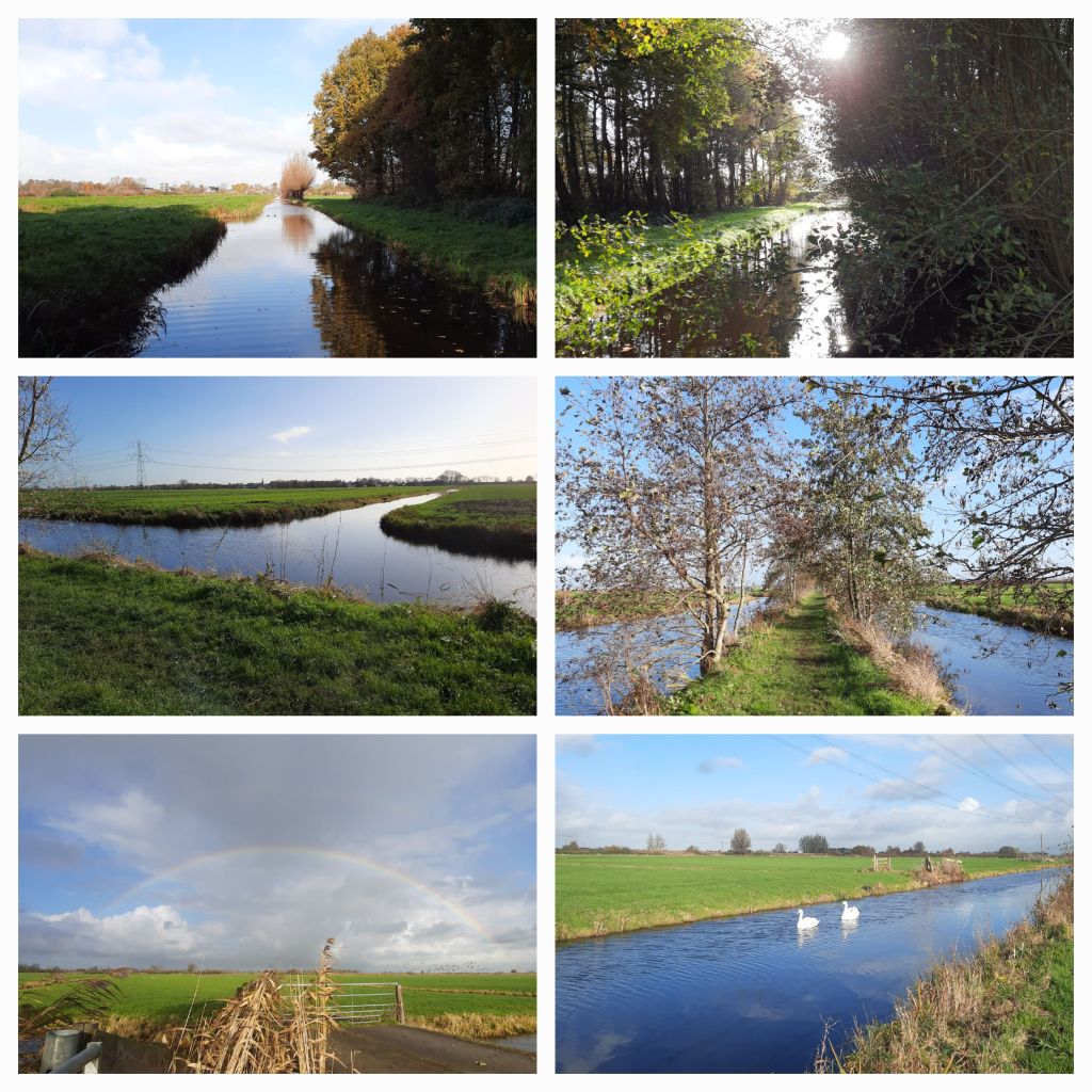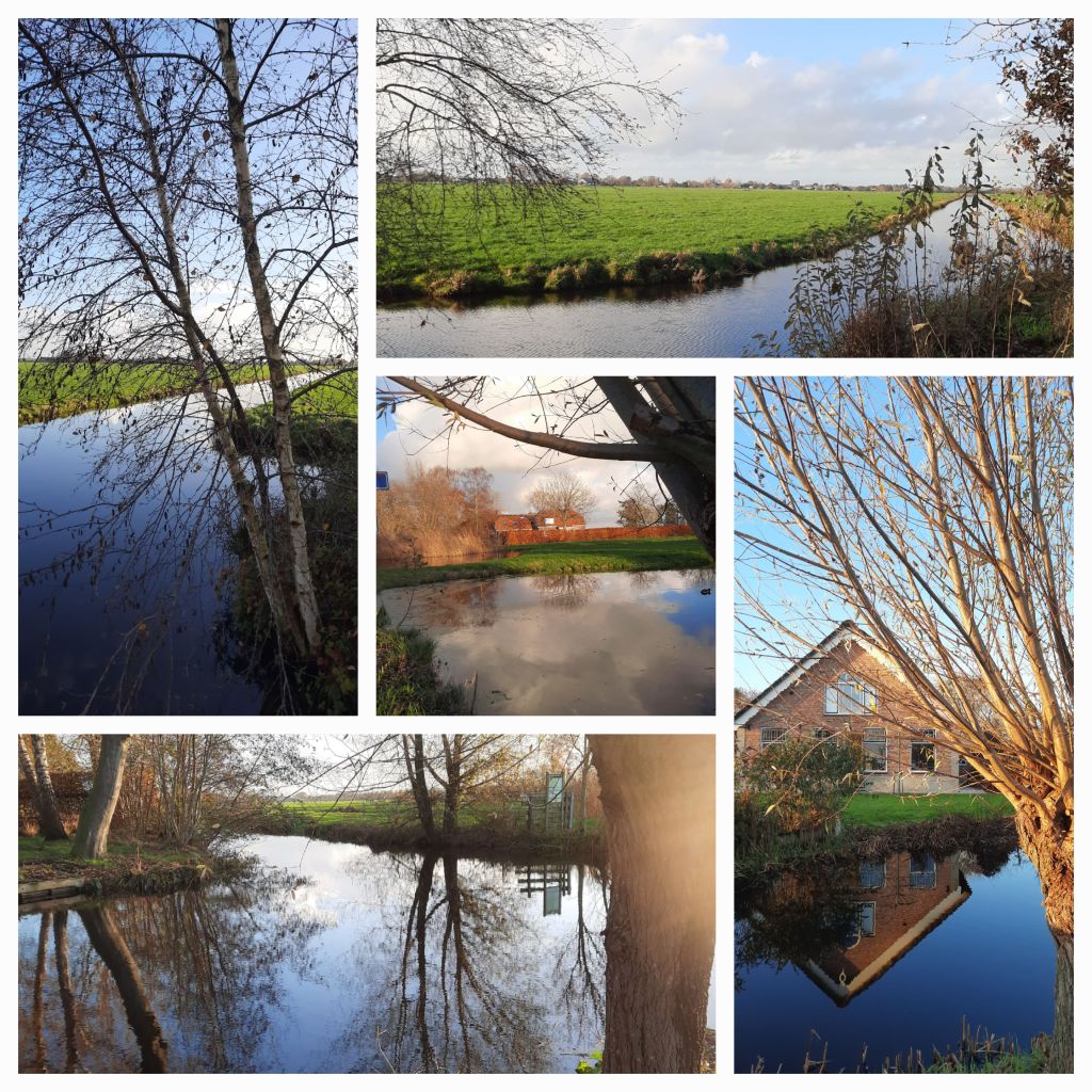 Tijdens mijn wandeling ervoer ik hoe laag het land is. Soms liep ik door het water, geen plassen, maar hoog grondwater. Moet je voorstellen dat er overal water staat. En dat je niet kunt varen, omdat er maar een paar centimeter water staat boven het maaiveld, en niet kunt waden omdat je niet weet waar het echt diep is, waar sloten zijn of kanalen. Ja, dit polderland is prachtig op zo’n zonnige dag als vandaag, maar met regen…
