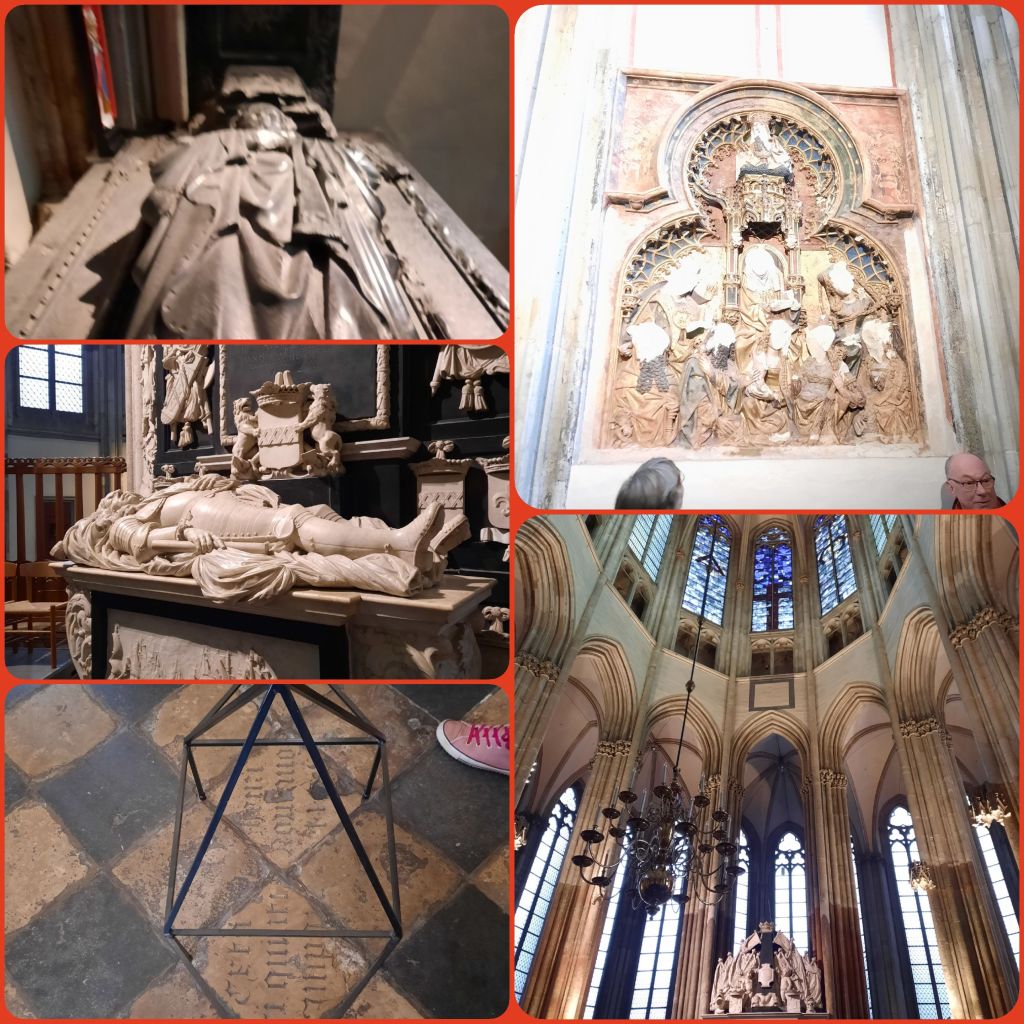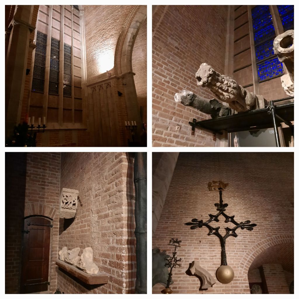 Om 14.15 uur begint de 2 uur durende rondleiding door 2000 jaar Utrecht. Eerst de Domkerk. Wij noemen dat nu de Dom, alsof dit de naam is van de kerk, maar het is de afkorting van Domus Dei ofwel huis van God. De officiële naam was ooit Sint Maartenskathedraal. De kerk was nl. de zetel of kathedra van de bisschop van Utrecht. De huidige kathedraal is de Sint Catharijne. De Dom is nl. sinds 1580 protestants.