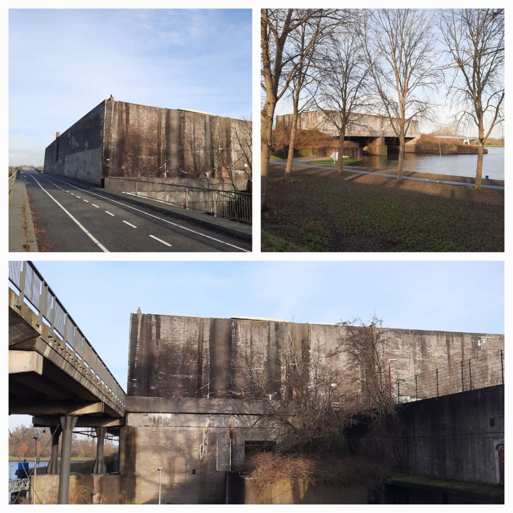 - Vervolgens de meest bizarre sluis van allemaal, ik denk de meest bizarre van heel Nederland. De Plofsluis. Zoals de naam klinkt, zo doemt de enorme kolos op boven het water. Dan heb je dus een mooi en groot kanaal gegraven, maar wel een probleem gecreëerd voor de landsverdediging. Het nieuwe Amsterdam-Rijnkanaal uit 1938 doorsneed de innundatievelden en het innundatiewater zou makkelijk weer weg stromen via het kanaal. Om dat te voorkomen werd boven het kanaal ter hoogte van kasteel Heemstede een enorme betonnen bak geplaatst met een relatief zwakke bodem. De betonnen bak met vijf compartimenten kon gevuld worden 40.000 ton zand, puin en grind. Bij oorlogsdreiging zou de bodem worden opgeblazen (geploft) waarna de bak zou leegploffen in het kanaal en dat zou afdammen. Het is nooit gebruikt. Omdat sloop te duur was is het kanaal er omheen gelegd, toen het verbreed moest worden.