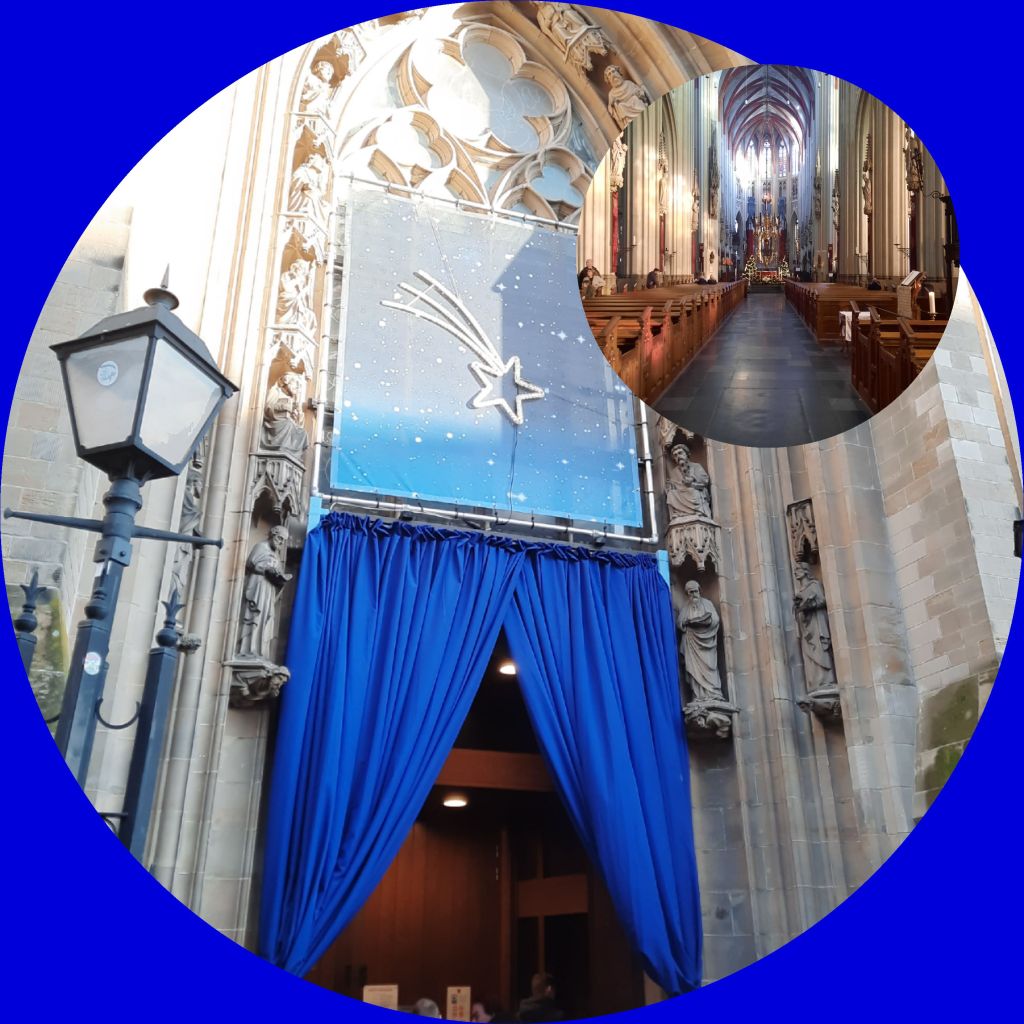 Al jaren heb ik een klein kerststalletje in mijn bezit. Een paar centimeter groot, een haakje er aan om het in de kerstboom te hangen, (die ik niet heb, dus staat het op een plank). Ooit een keer gekocht in Museum Catharijneconvent. En vandaag ben ik daar weer, tenminste in de binnentuin en in de naastgelegen Catharinakathedraal.