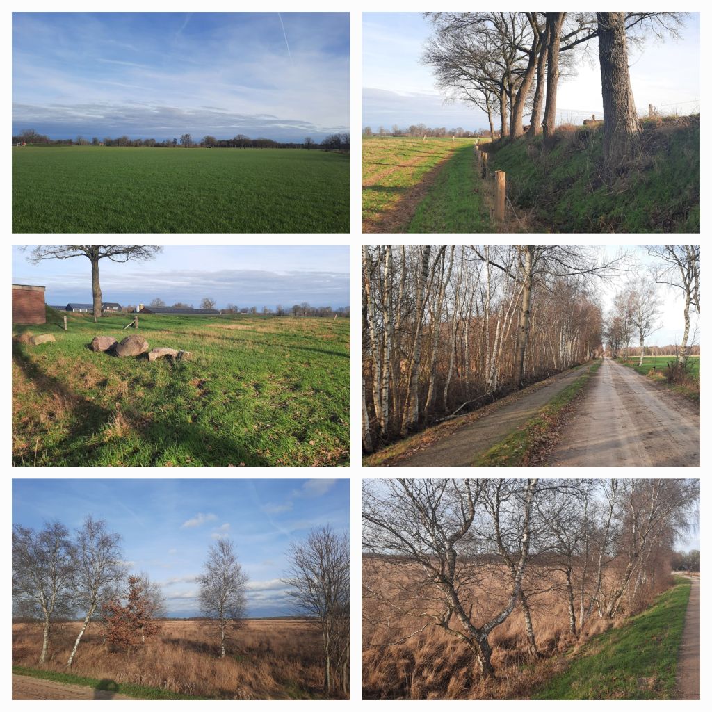 We lopen verder naar Notter. De zon komt door en het wordt zelfs een beetje te warm. Dus loop ik even later met blote armen. Het is januari, hè?