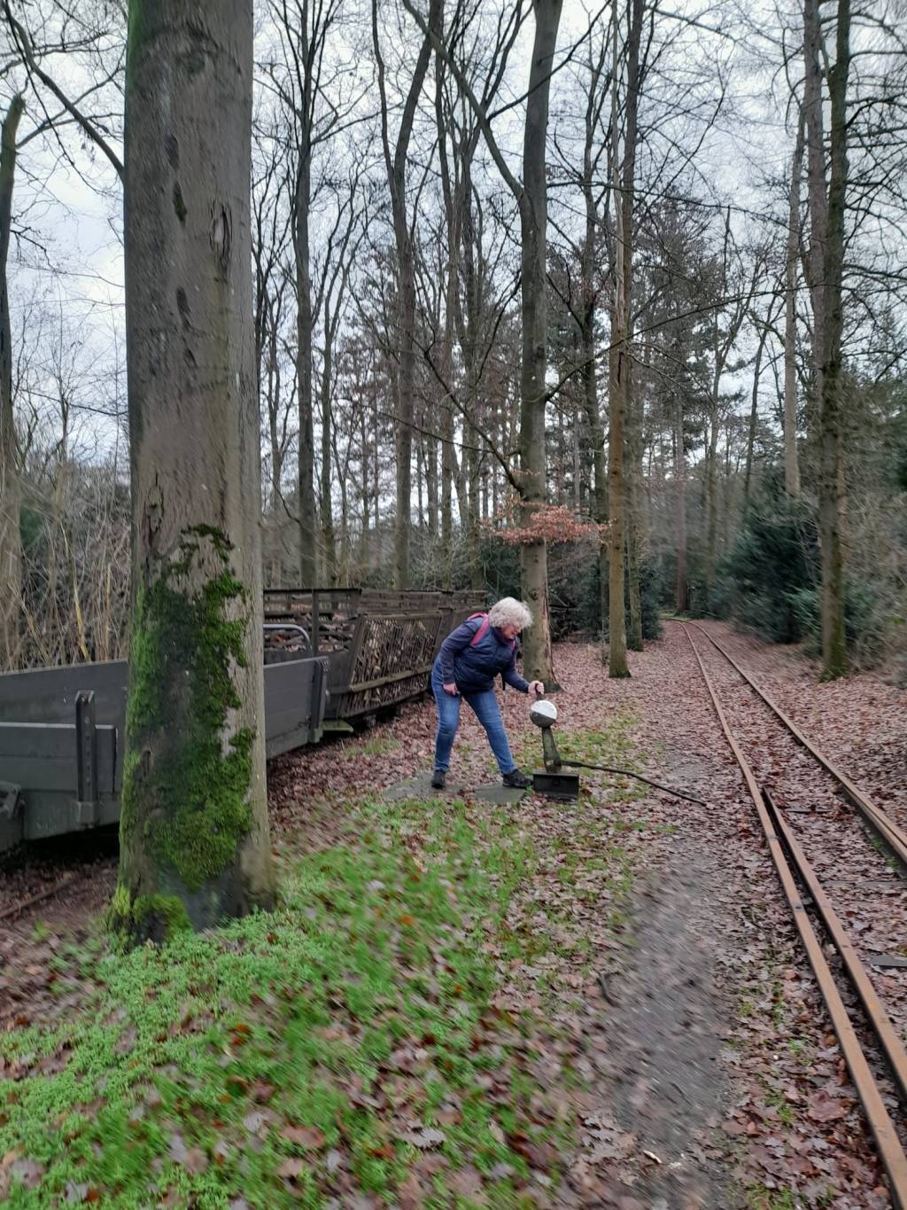 Ons startpunt is Rijssen, bij het Leemspoor, een museumspoorlijn. In de omgeving wordt veel leem aangetroffen en dat werd eeuwenlang gebruikt voor de steenfabrieken in de omgeving. Met paard en wagen werd het leem vervoerd. Toen rond 1900 het leem opraakte, werden richting Markelo nieuwe groeves aangeboord. Het vervoer werd met treintjes gedaan, via smalspoor. We lopen door het bos, langs en over dit spoorlijntje. De diverse wissels werken echt! Ik heb ze ook allemaal weer terug gezet, echt waar!