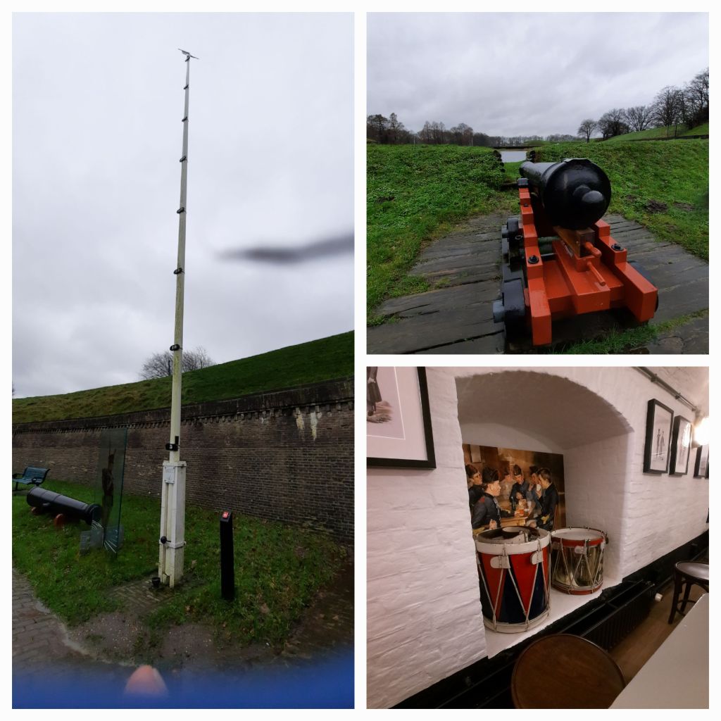 Opmerkelijk 1: buskruit is poeder. Hoe kun je zien of het niet is versneden met iets anders? Op het terrein van het Vestingmuseum staat een mast die ik voor een vlaggenmast hou. Mis, het is een kruitmast. Onderaan zit een potje, buskruit erin, kogel erop, aansteken maar en poef! De kogel wordt omhoog geschoten langs de mast waarop met bordjes in Amsterdamse voeten de afstand is aangegeven. Hoe hoger de kogel, hoe beter de kwaliteit buskruit. Simpel maar doeltreffend.