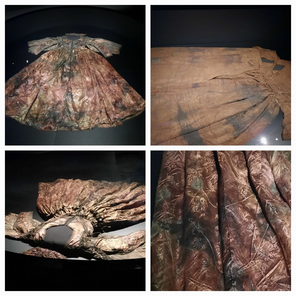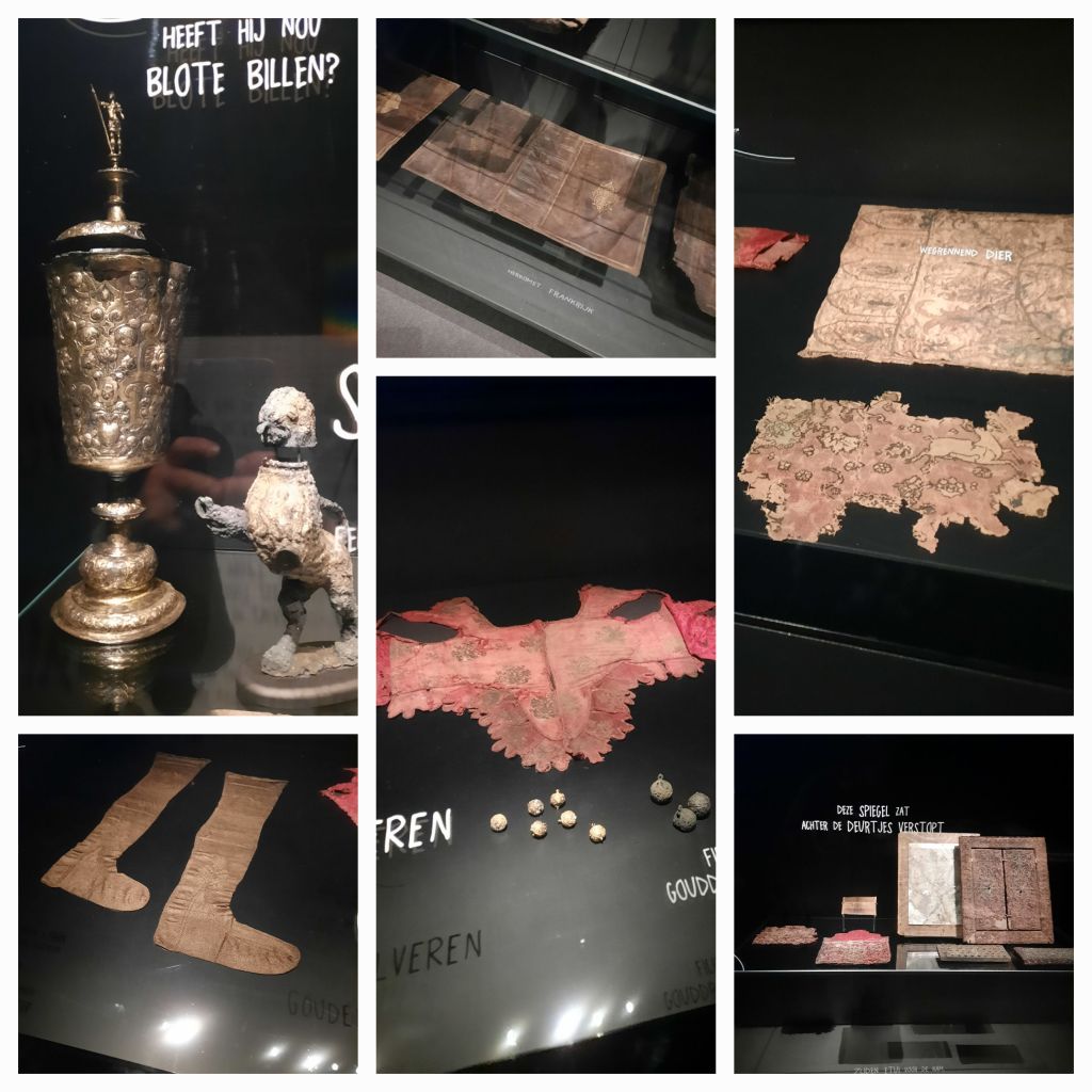 Het hoogtepunt: twee jurken, de een vrijwel intact, van de ander een rok en lijfje. Wat een pracht, zelfs na zoveel eeuwen in het water is duidelijk dat dit grote rijkdom vertegenwoordigt. Het is echt een historische sensatie om dit te mogen zien. Diep onder de indruk loop ik langs de rede van Texel richting de veersteiger.