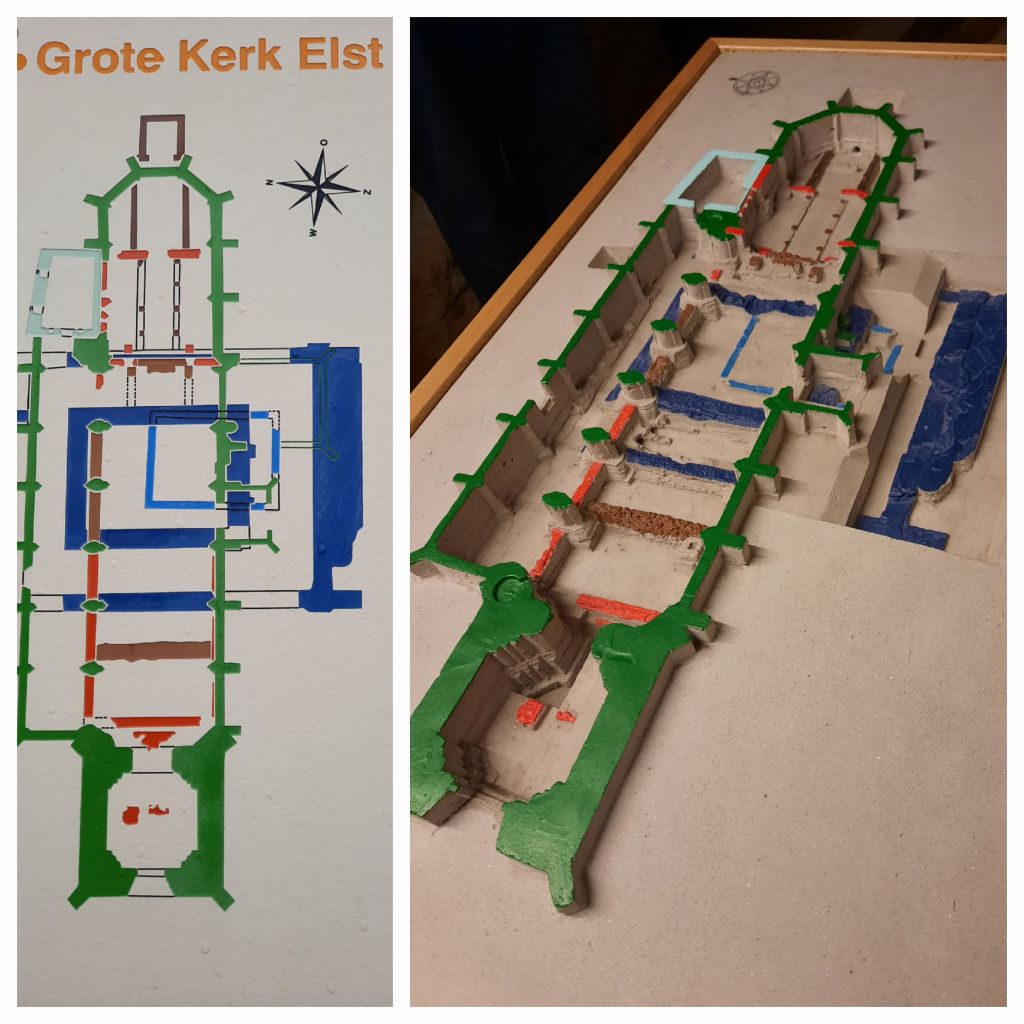 En heel bijzonder: naast de crypte van Werenfridus, de gemetselde sarcofaag met daarin het meisje van Elst, een skelet uit de 11e eeuw. Ongeveer 14 jaar toen ze overleed, zwanger of net bevallen. Begraven buiten de kerk, maar vlak naast de crypte, op zeer heilige grond dus. Wie ze was, waarom ze daar begraven is? Niemand het die nog weet.