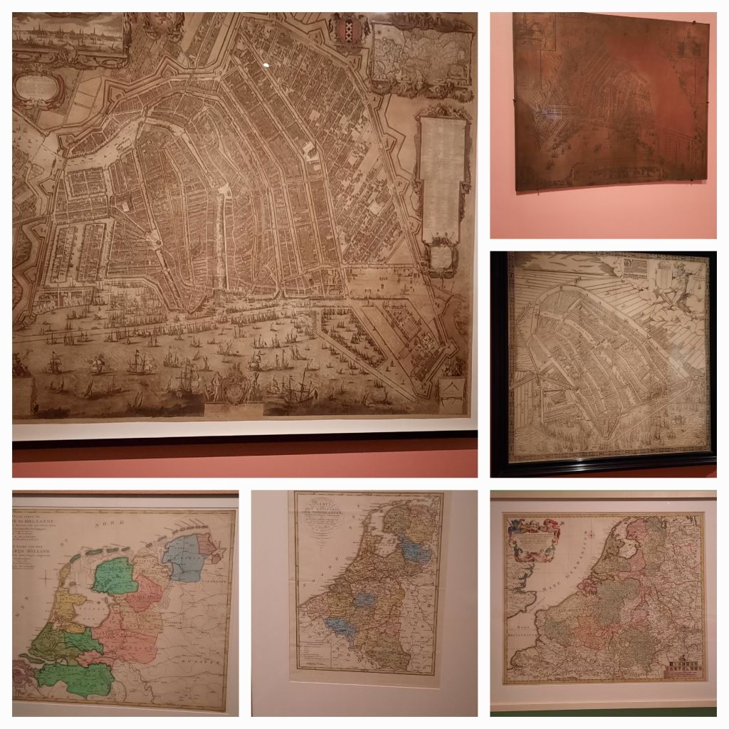 Start is natuurlijk Amsterdam. Allerlei prachtige kaarten van Amsterdam hangen er aan de muren, waaronder eentje in vogelvlucht uit de 16e eeuw. Ongelooflijk gedetailleerd bracht deze cartograaf de stad in beeld. En dat zónder drone!