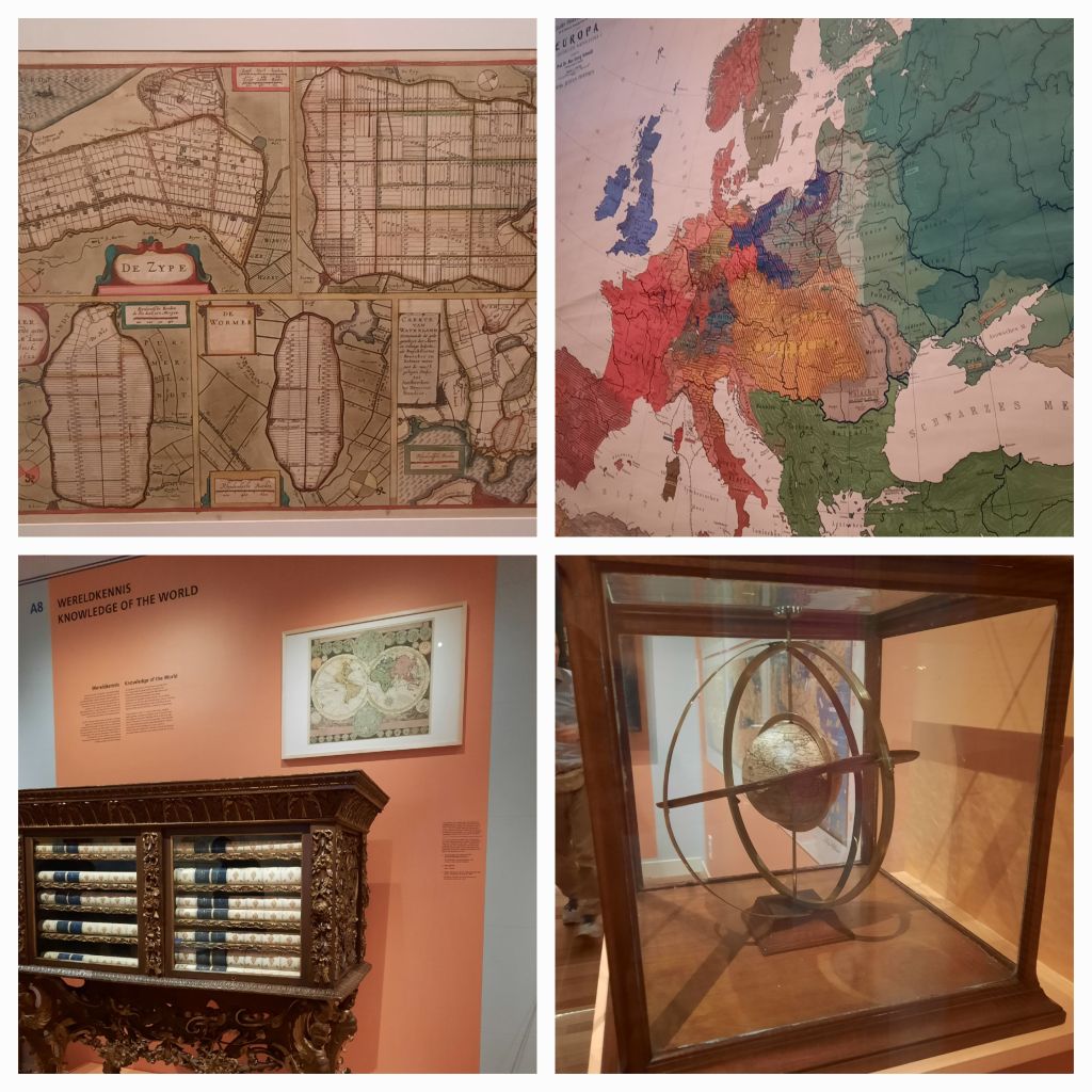 Dan Nederland, dan Europa en dan de Wereld, met allemaal oude en nieuwe(re) kaarten. Zoals de Leo Belgicus, een kaart waarop Nederland op zijn kant ligt, het Westen boven, gevat in een leeuw als zinnebeeld van het land.