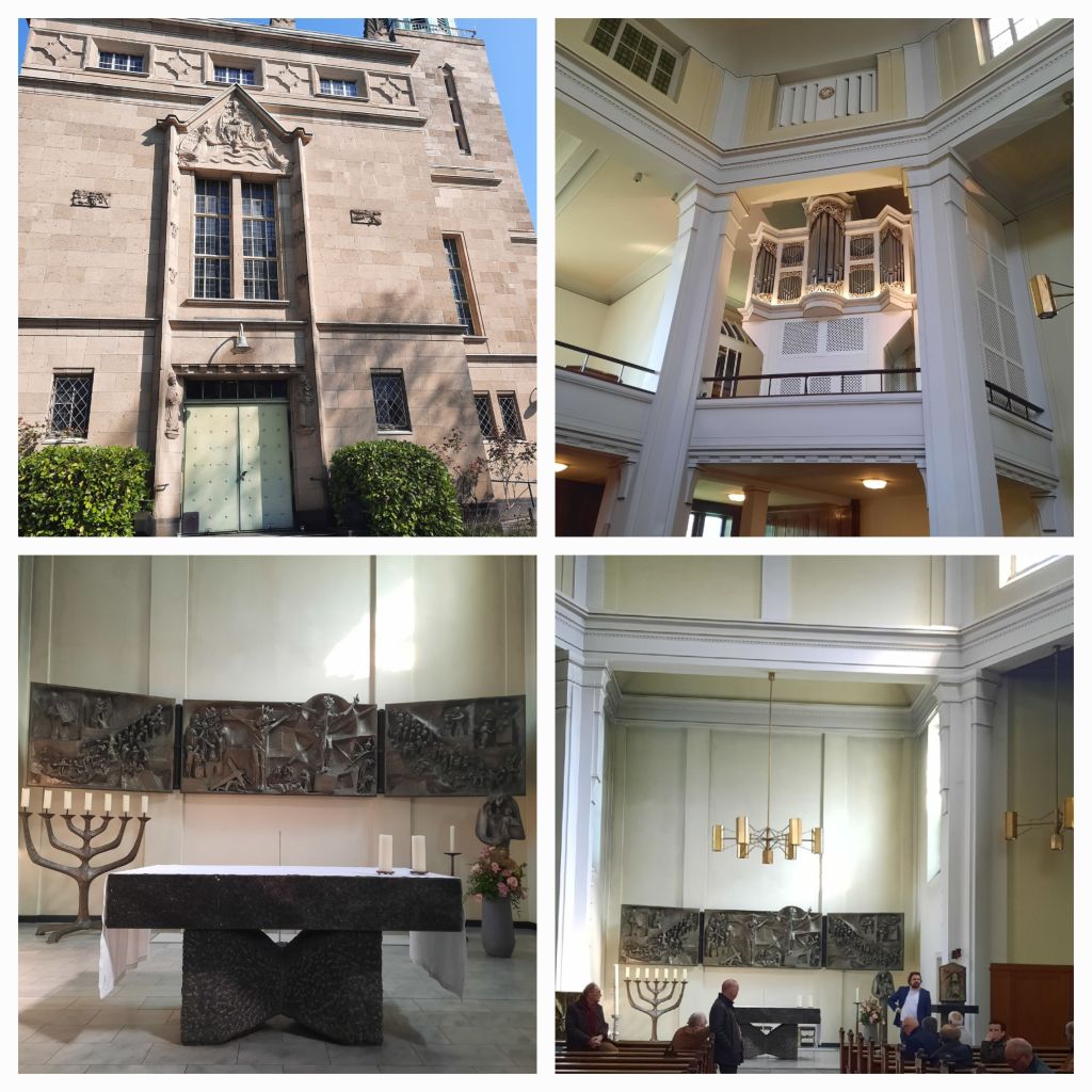 De kerk van vanmorgen staat in een buitenwijk en heeft dit geweld ongeschonden doorstaan. Het ongenaakbare gebouw uit 1928 van grote grijze blokken detoneert tussen de elegante witte huizen. Binnen is de kerk verrassend licht en prettig. En het orgel is de grote verrassing. Zeldzaam helder van klank waardoor de muziek goed te volgen is. Bach, Reger, schetsjes van liederen uit Valerius Gedenkklank, en een weergaloze improvisatie op een Pinksterlied.
