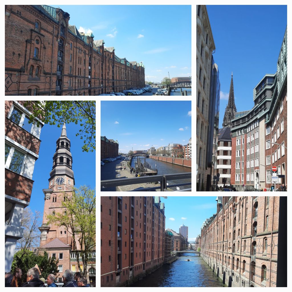 We zijn nog steeds in Hamburg. Hamburg is een Großstad, zoals de Duitsers dat zelf zo mooi noemen. Het stadhuis dat we gisteren zagen is een gigantisch gebouw uit de 19e eeuw, de vele kerken hebben allemaal zeer hoge torens. 147 meter, 132 meter, 120 meter. De kerken zijn navenant groot. Ooit moet de binnenstad prachtig geweest zijn. Her en der zien we nog glimpen van het verleden.