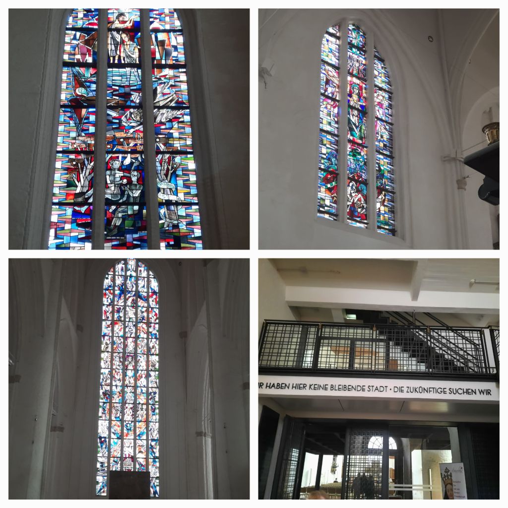 De Sankt Katharinen is een oorspronkelijk 13e en 14e eeuwse kerk, in de 17e en 18e eeuw uitgebouwd, maar in 1943 viel deze kerk ten prooi aan de vlammen, net als de kerken die we gisteren bezochten.