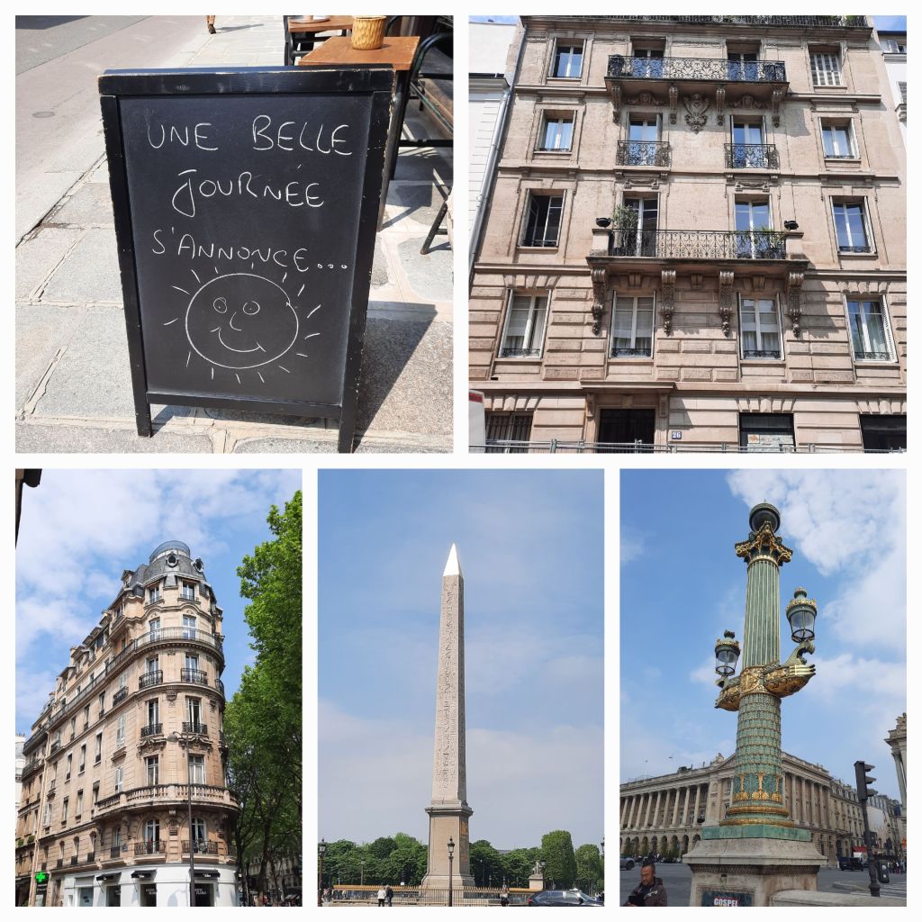 De tijd is even aan mezelf en ik loop de Rue Royal af, richting Place de la Concorde. Middenop staat de obelisk, een trofee door Napoleon uit Egypte meegenomen. Links de Tuillerieën met de tuinen en in de verte het Louvre. Rechts nog meer tuinen en het Petit Palais, een enorm gebouw. Die Franse koningen dachten niet klein, zoveel is me wel duidelijk.