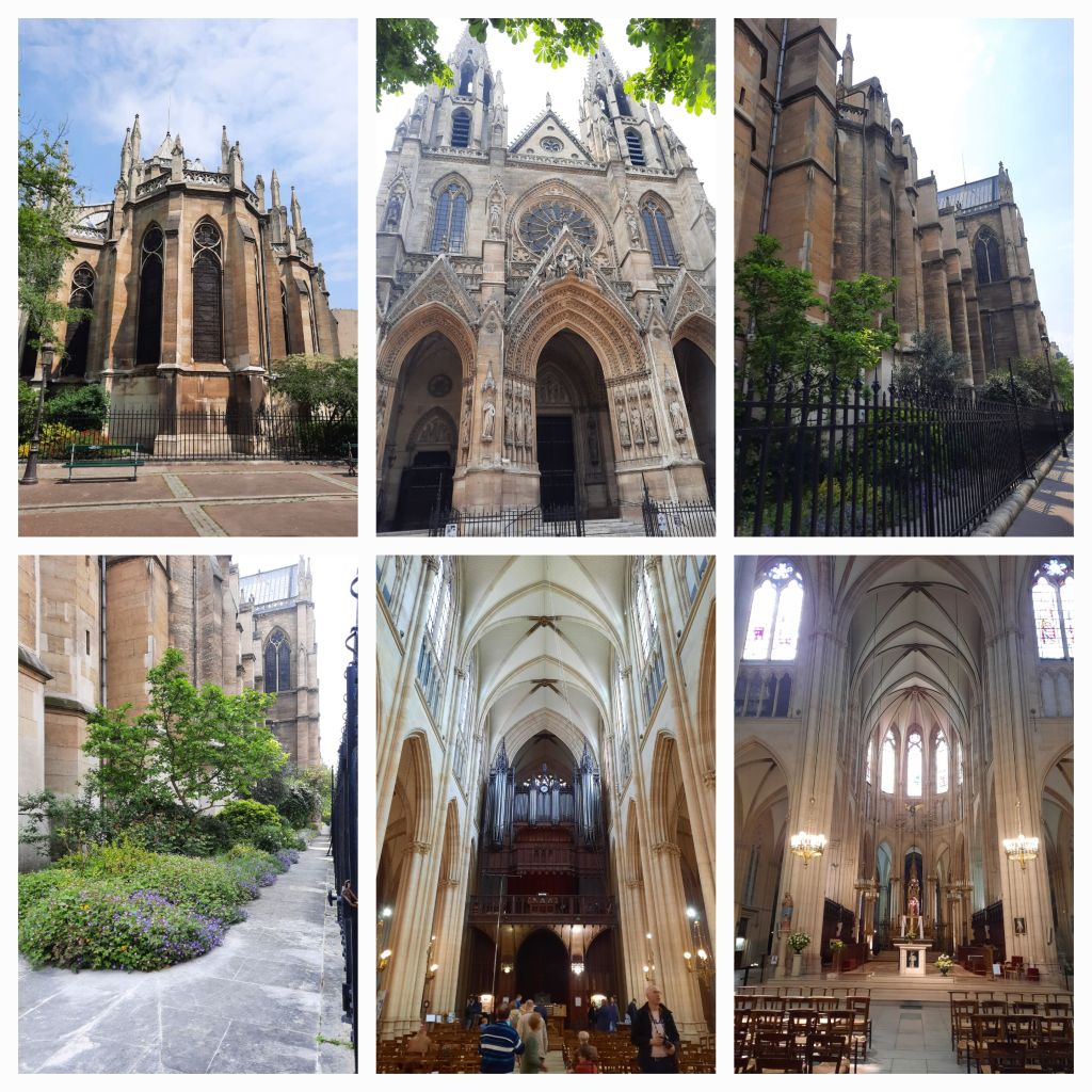 Ik koop een belegd stokbroodje bij de bakker en wandel naar de Sainte-Clotilde. Hier is het heel rustig, een mooi pleintje, mooie tuinen om de kerk. Verrassend. Op een bankje laat ik me het broodje goed smaken.