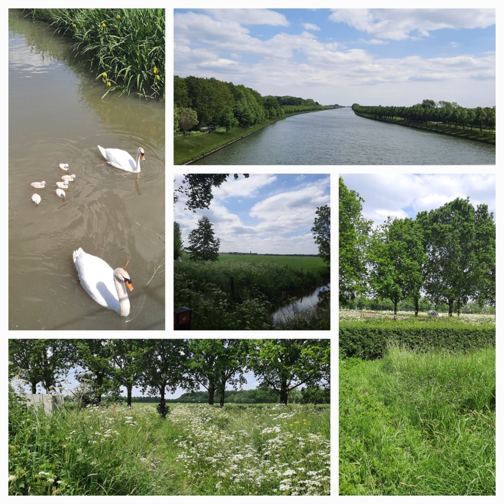 Ik geniet van de natuur om me heen. Boterbloemen, fluitekruid, kool- en raapzaad, klavers, meidoorns en natuurlijk de kastanjes: alles bloeit. De harde wind probeert de kastanjekaarsjes te doven en de bloempjes dwarrelen als confetti over straat. Een zwanenpaar zwemt met jongen door een sloot en kikkers kwaken.