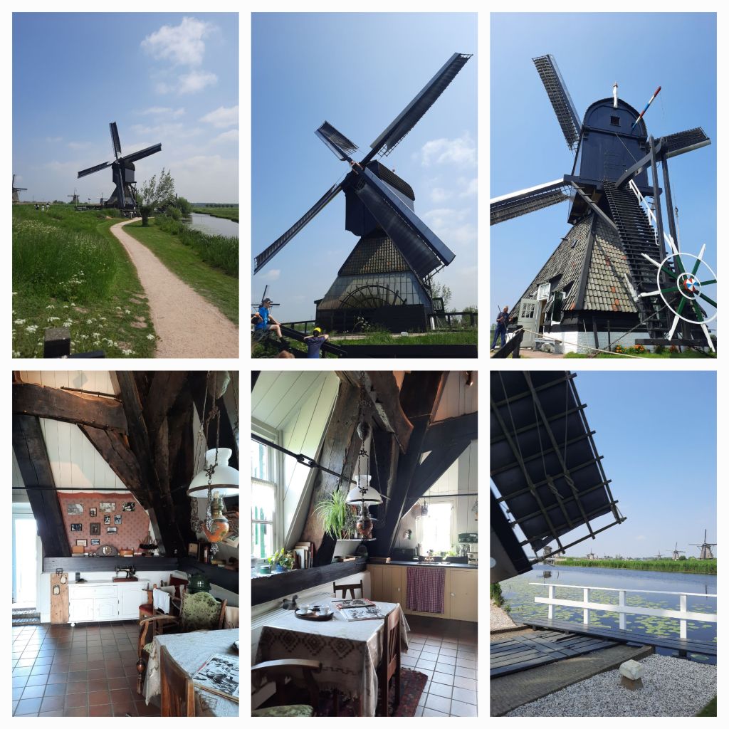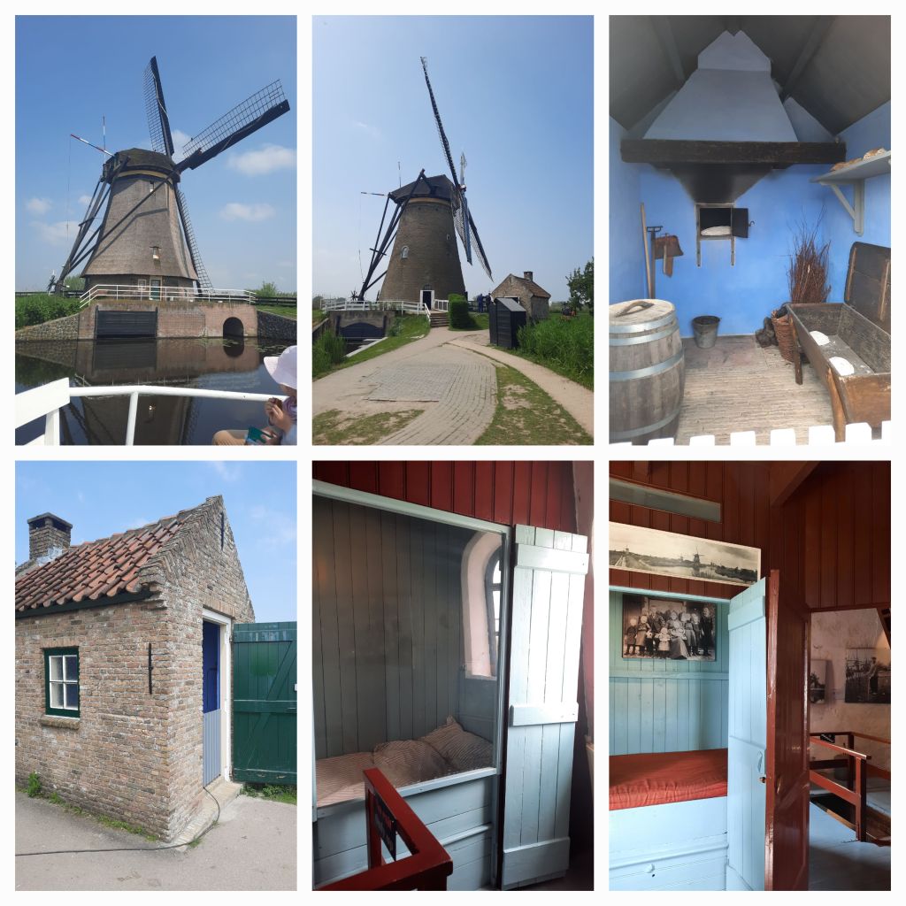 Deze laatste molen kan ik van binnen kijken. De molen stamt uit de 17e eeuw en al eerder stond hier een molen, maar die overleefde de 80 jarige oorlog niet. Je kunt zien hoe een molenaar met zijn gezin zelfvoorzienend leefde op zijn stukje grond.