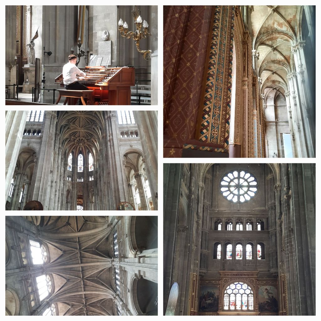 De organist komt binnen, bijna rennend: ‘Mon train, mon train’. Vertraging dus met de trein. Hij gaat onmiddellijk naar boven en begint aan een orgeldemonstratie/-improvisatie van drie kwartier, waarin hij alle registers van het orgel laat horen. Ik vind het prachtig. Ik zit helemaal voorin, vlakbij het altaar, onder toeziend oog van Clotilde en de muziek bezorgt me zo nu en dan kippenvel.