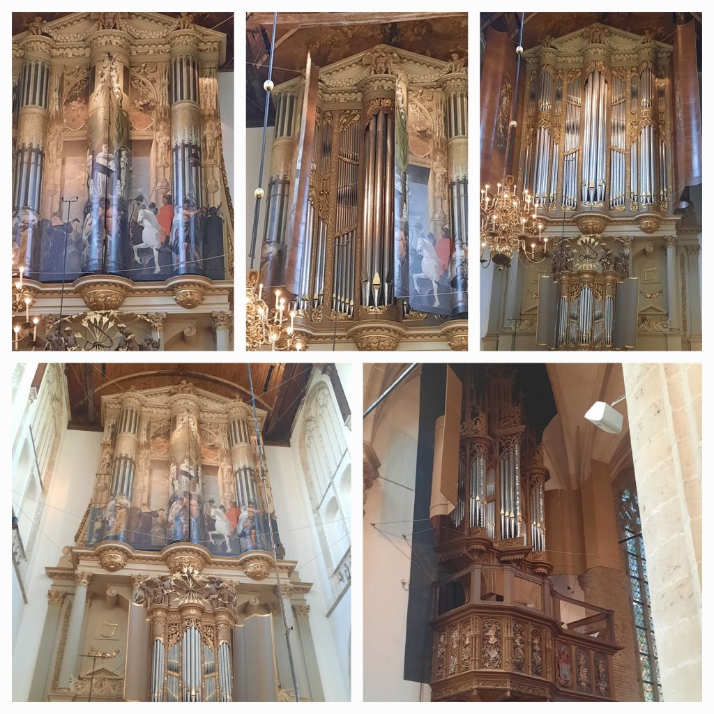 Alkmaar Victorie: overal in de stad kwam ik het al tegen, maar in de kerk uiteraard ook, maar subtiel. Op de grote luiken van het grote orgel is een schildering aangebracht die David voorstelt die de overwinning op de Filistijnen viert. Hij brengt het hoofd van Goliath op een spies met zich mee. Een verbeelding van Alkmaar dat de Spanjaarden verslaat.