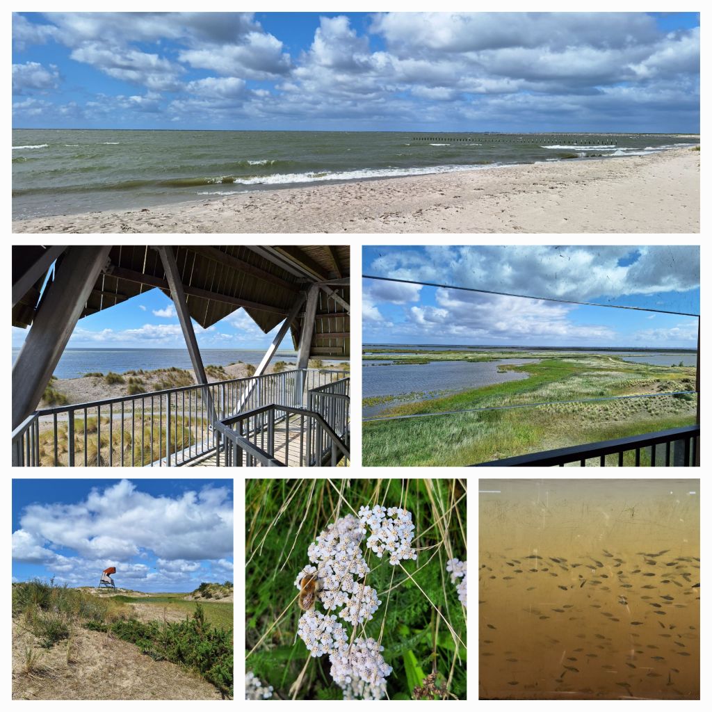 Er zijn duinen met een heus strand, er zijn diverse vogelhutten, allemaal verschillend. De Duikeend is bijzonder omdat je hier onder water kunt kijken. Voor het glas zwemmen vissen zonder last te hebben van de mensen. De Steltloper is een groot uitkijkplatform en door het mooie weer kan ik ver kijken.