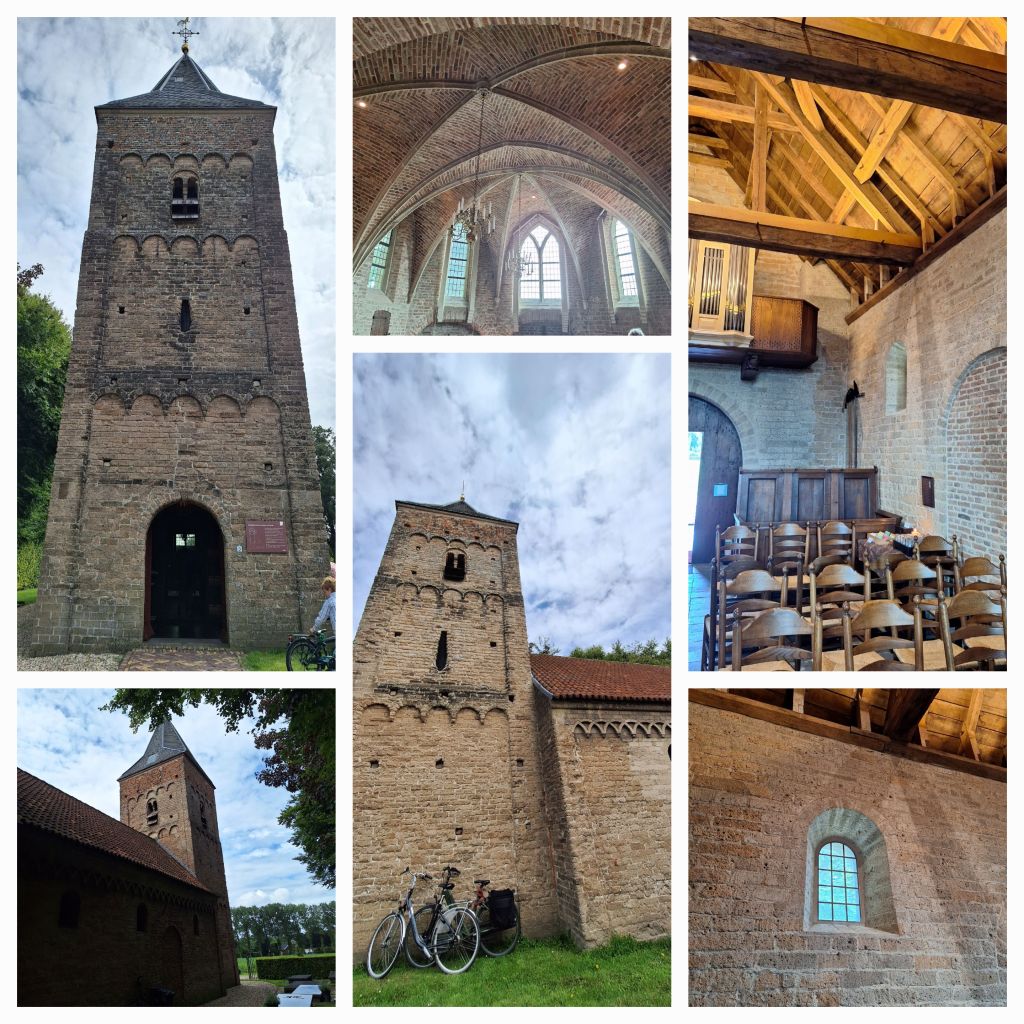 In Ressen is de oude kerk open en ik wip even binnen. Het kerkje is echt heel klein. Het Romaanse schip is 11e eeuws, de toren 12e eeuws en het kleine koor is gotisch. Het ligt prachtig aan de rand van de velden en niets verraadt meer de schade van de slag om Arnhem.