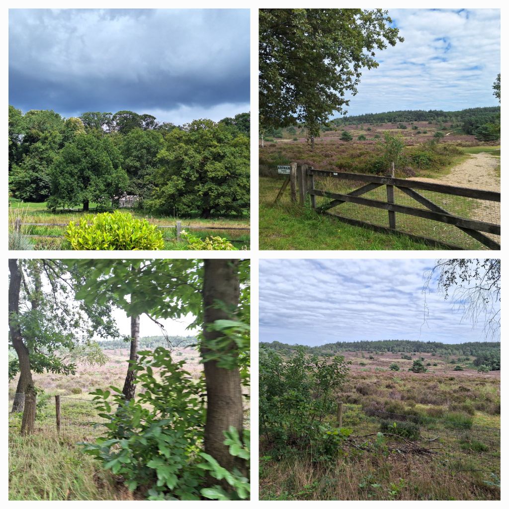 Langs al bloeiende heide en door prachtige bomenlanen kom ik in Ugchelen en dan in de buurt van Paleis het Loo waar mijn hotel staat.
