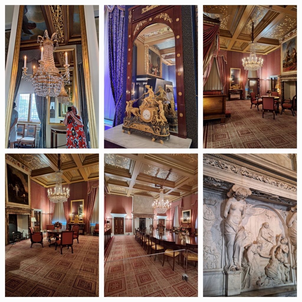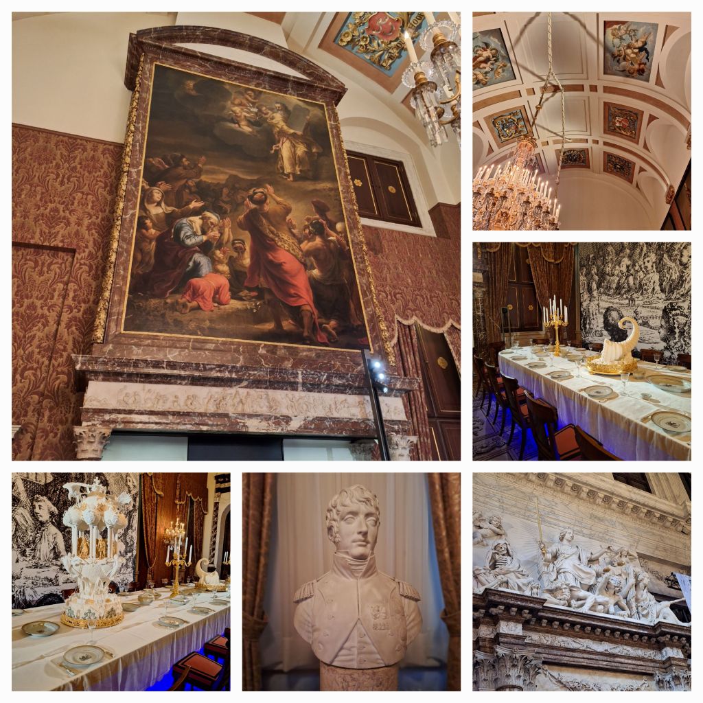 Uit die tijd stammen het balkon, dat verrassend laag bij het plein is, als je er vanuit het Paleis naar kijkt, de grote kroonluchters en het Empire meubilair. Dat past wonderwel in het classicistische gebouw, omdat dit teruggrijpt op dezelfde periode, de klassieke oudheid.