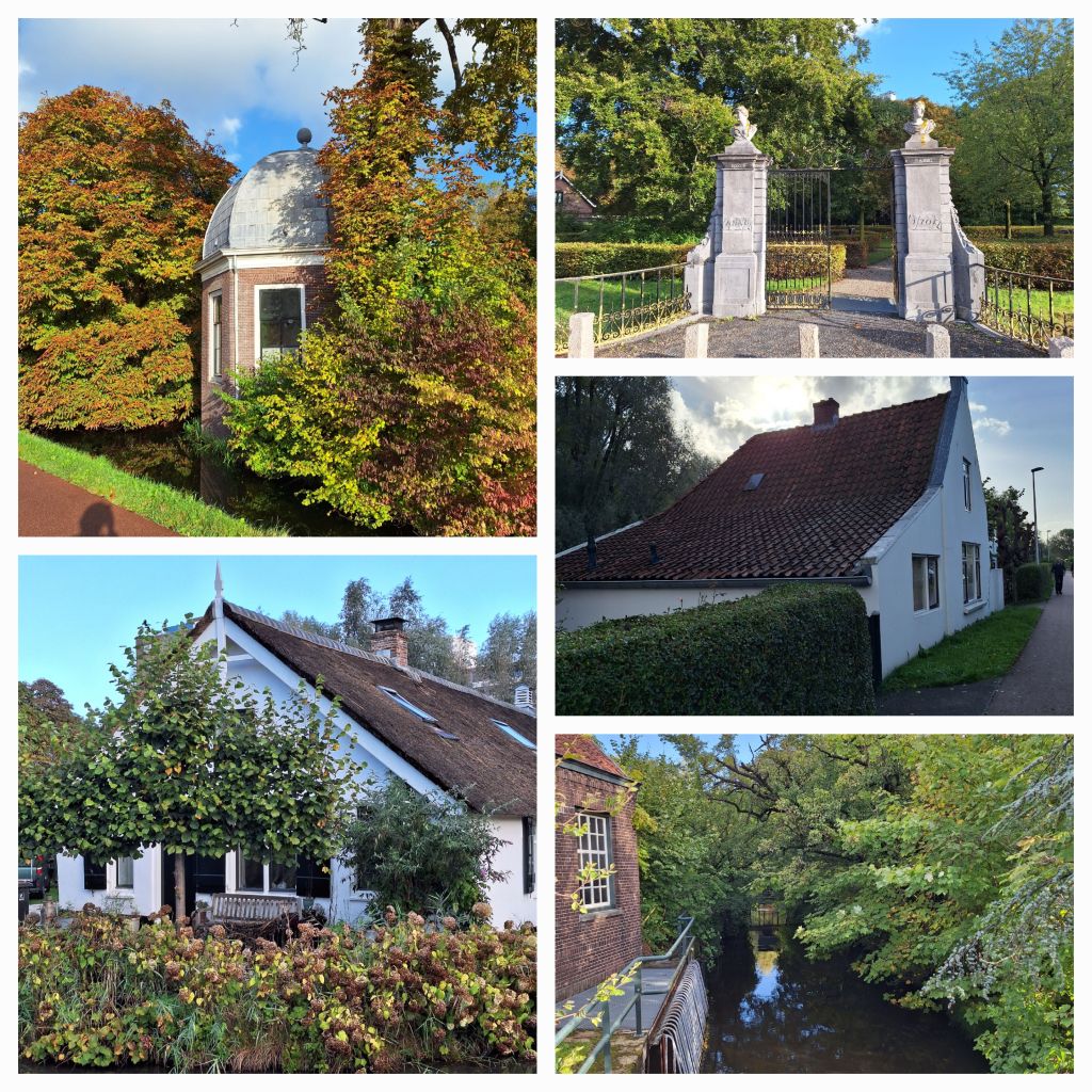 Langs de Vecht vervolg ik mijn weg, eerst op de linkeroever en bij Roode Brug steek ik over naar rechter. Ineens plenst er een buitje uit de lucht, maar als ik de paraplu heb opgediept is het ergste al over en schijnt de zon alweer. Het wordt landelijk aan de Vecht met voormalige boerderijen en de toegang tot huize Rosendael, met prachtig theekoepeltje.