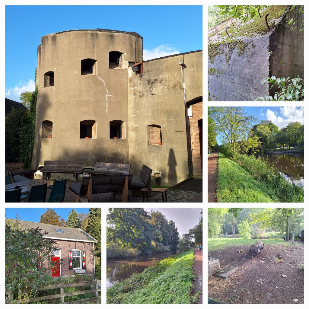 Vanaf het stadion lopen we meteen naar de oever van de Kromme Rijn en dan steken we over naar de Kromhoutkazerne, voor het eerste stempel. Op het kazerneterrein ligt het eerste stukje Nieuwe Hollandse Waterlinie dat we tegenkomen, nl. voormalig Fort Vossegat.