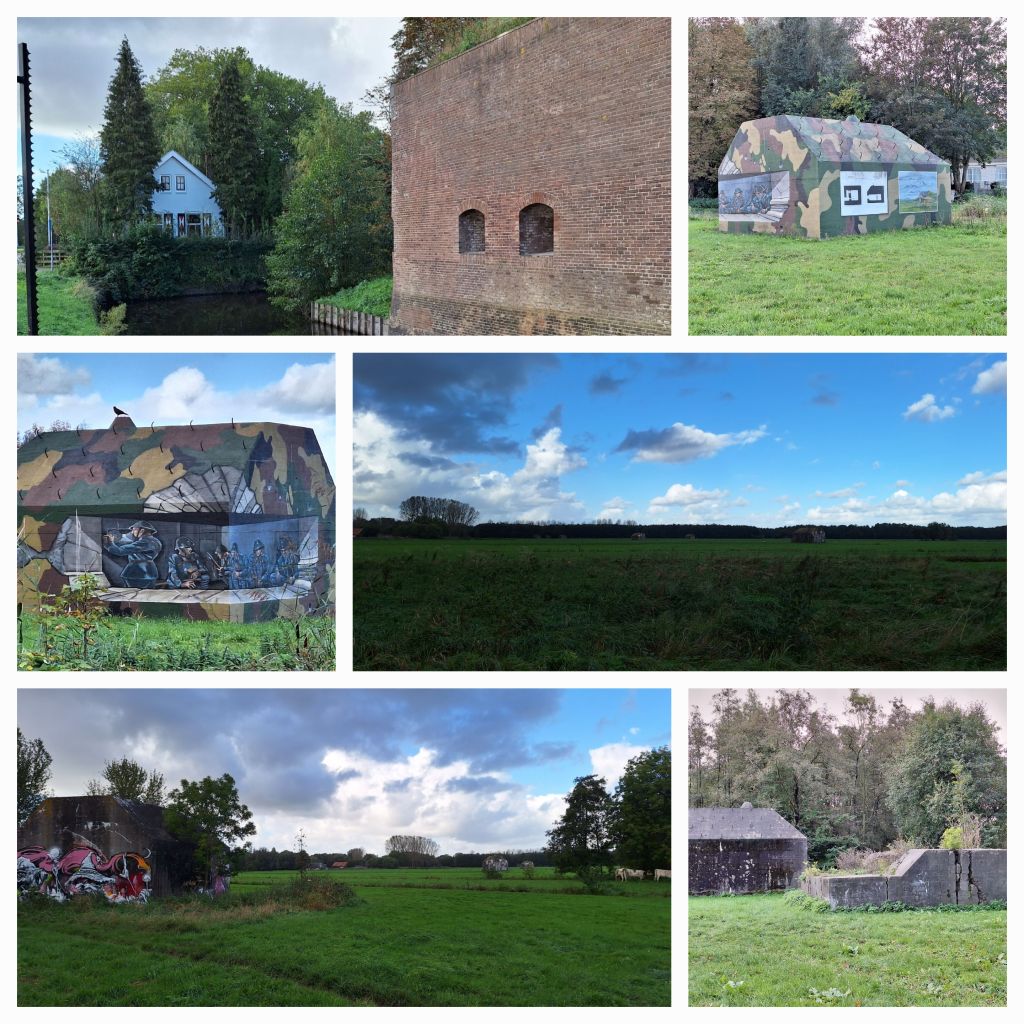 De lijn van Poederoyen via Gorinchem, Woerden en Naarden naar Muiden kreeg een flinke uitstulping, waar Utrecht in kwam te liggen. Hiervoor werd een ingenieus stelsel van forten, batterijen, versterkingen, duikers, sluizen en bruggen aangelegd, net voor de Tweede Wereldoorlog aangevuld met de zgn. kazematten ofwel groepsschuilplaatsen. Het karakteristieke silhouet hiervan is overal te zien op deze route.