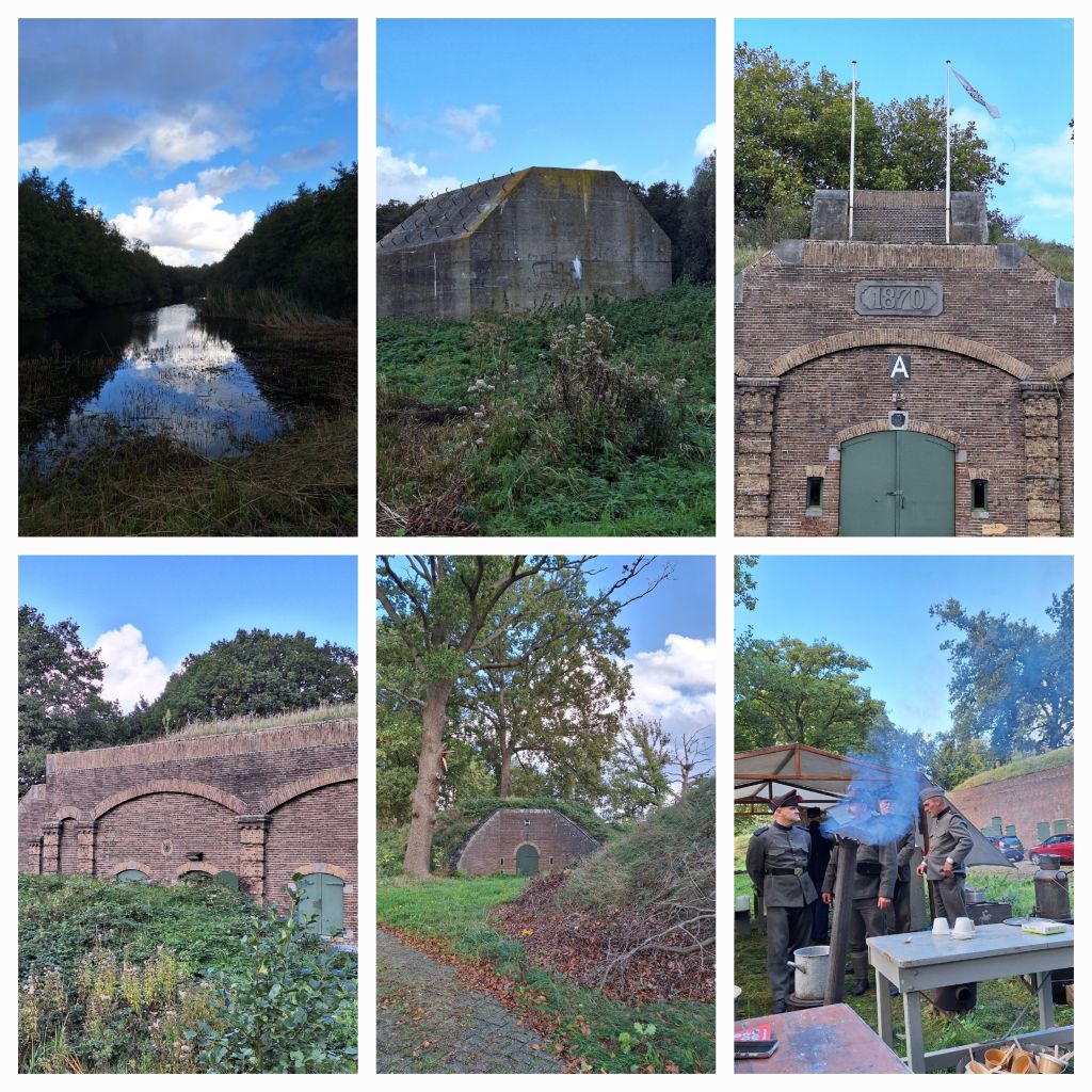 Ik ploeter over het graspad naar fort Ruigenhoek. Het is hier erg stil, terwijl de stad zo dichtbij is. Weer dat donkere water van de geheimzinnig aandoende grachten, een imposant wachtgebouw, bomen in overvloed, en op het binnenterrein… een veldkeuken. Een vettige rookpluim komt uit het fornuisje en soldaten in diverse oude uniformen scheppen heerlijke tomatensoep in voor de wandelaars.