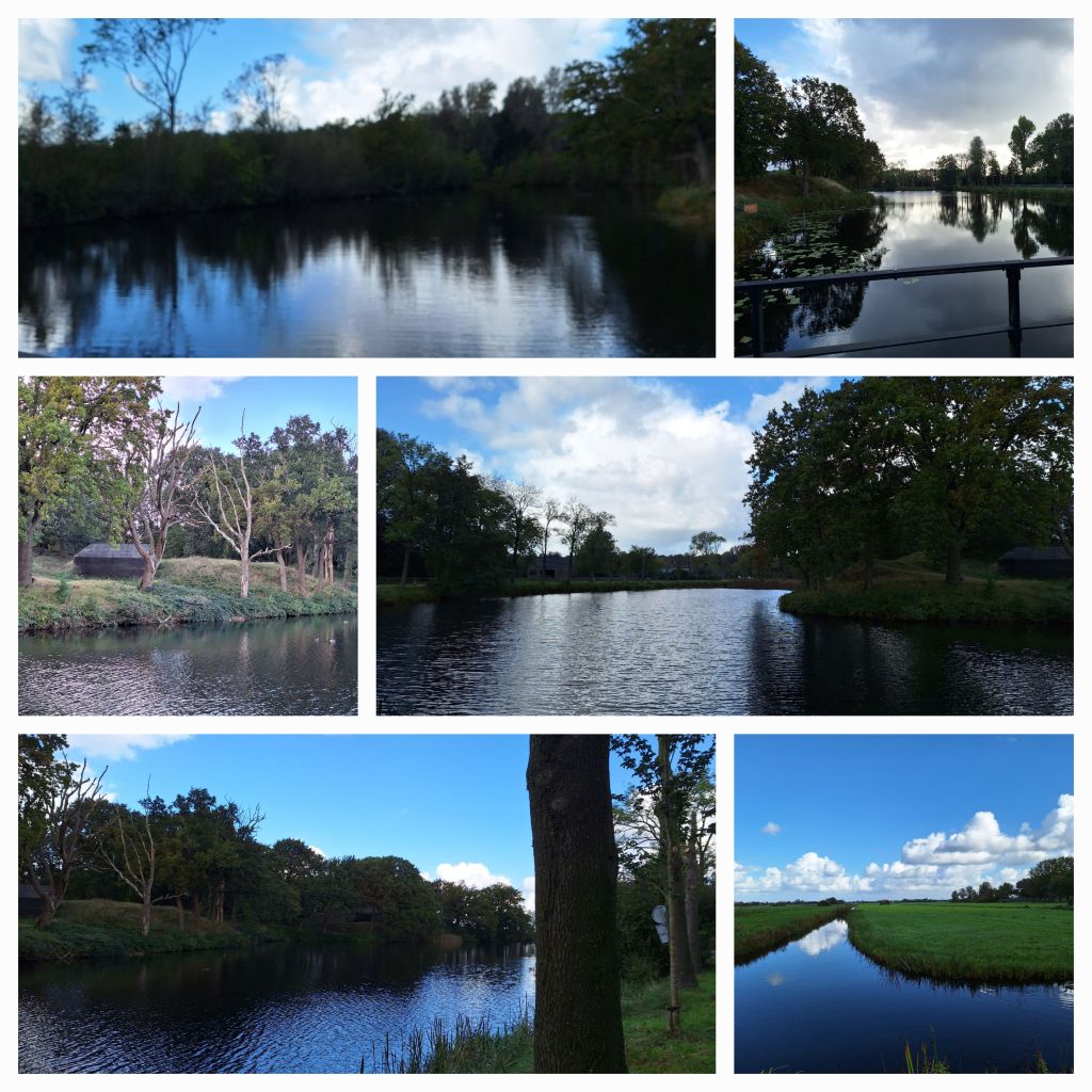Langs dit mooie kanaal loop ik naar Fort de Gagel. Hier loopt een verschrikkelijk drukke weg langs, maar eenmaal in het fort is het heerlijk rustig. Ik vind het tijd voor een pauze. Op het terras geniet ik van koffie mét en de schoenen gaan ook even uit. Valt niet mee, hoor, nieuwe schoenen inlopen.