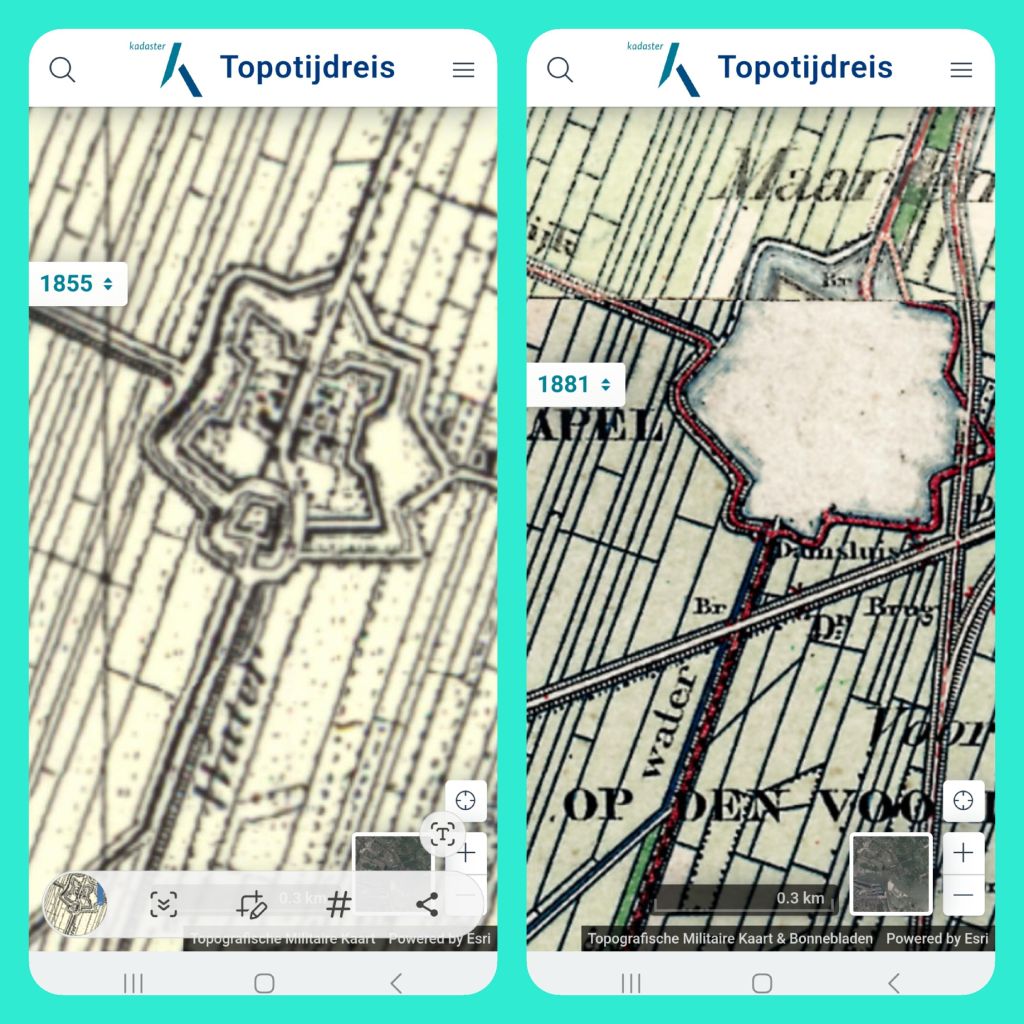 Weet je wat zo grappig is aan die forten? Kaartenmakers brengen minitieus een gebied in kaart, dus ook een fort, militair of niet. Ik heb de TopoTijdreis er op na gekeken en ja, hoor, op sommige kaarten zie je op de plek van een fort alleen maar de wegen er om heen en niet wat er in het fort staat, zeg maar een fortvormige vlek. Bij fort Blauwkapel is er zelfs iets overheen geplakt, lijkt het. Een beetje spion zou hier echt wel raad mee geweten hebben. Toch? Die zou wel acces gehad hebben tot de benodigde informatie.