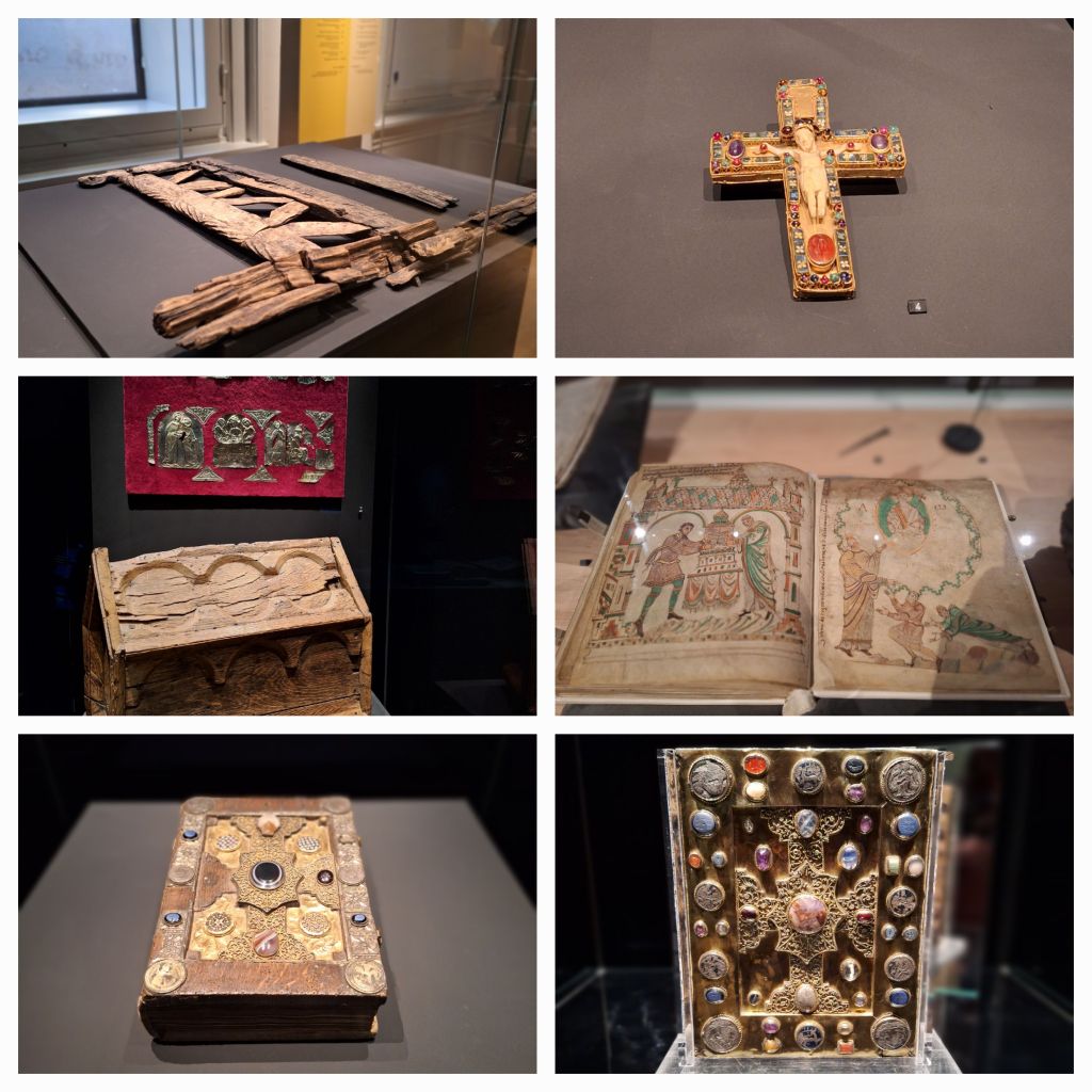 Er liggen bijzondere boeken met soms prachtig versierde banden vol edelstenen, en reliekschrijnen, gemaakt van de mooiste materialen of gewoon van hout.
