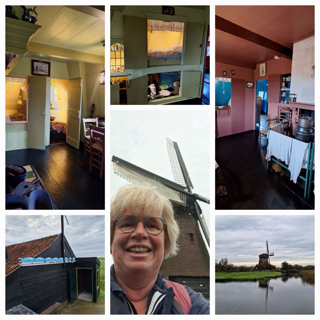 Ik heb vandaag een soort tijdreis gemaakt door het landschap van Noord-Holland. In Schermerhorn stapte ik uit de bus voor een bezoek aan het Molenmuseum. Het gaat om 9 uur open en ik stapte om 10 over negen uit de bus. Dacht je dat ik de eerste bezoeker was? Nou, nee dus. Twee grote touringcars hadden net een groep toeristen uitgeladen.