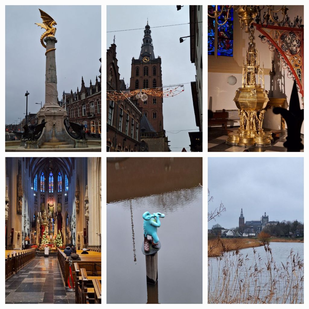 De zon gaat vandaag pas om kwart voor negen op, dus is het nog donker als ik naar de trein loop. Als ik in Den Bosch uitstap is de zon dan ook nog maar net op en het is somber en bewolkt met een lichte miezer als ik naar de Sint Jan loop. Ik stap even binnen in deze altijd weer indrukwekkende kerk en loop dan de Parade af naar de Oude Dieze om daar het Bossche Broek in te lopen.