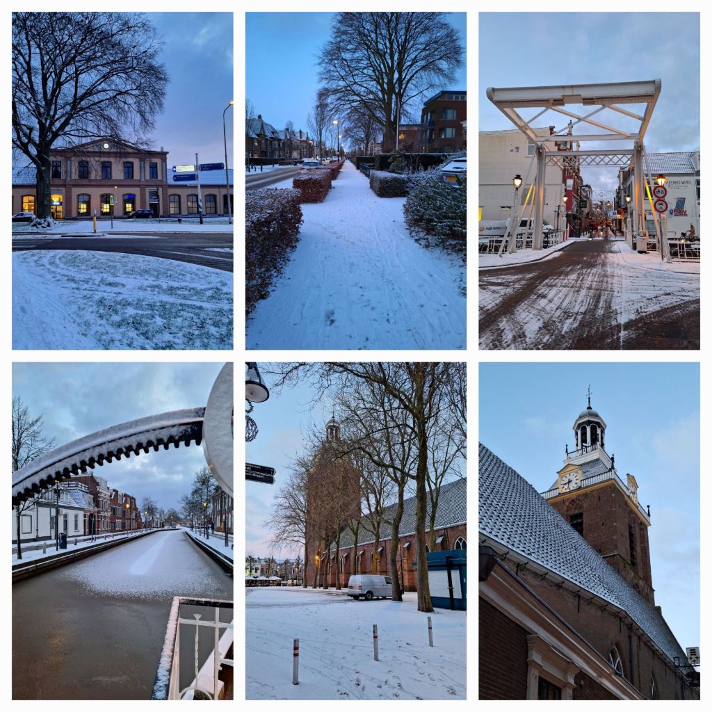 Vanmorgen liep ik door de stille straten, met de verse sneeuw krakend onder mijn schoenen. Onderweg zag ik sneeuw langs de ramen van de trein, reizigers kwamen met sneeuw op muts en jas binnen. Heerlijk winterweer in het vooruitzicht.