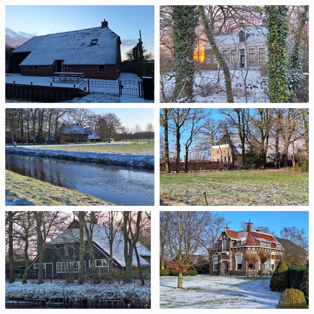 Na koffie met gebak ga ik op pad naar Echten. Ik wandel een ander landschap in, dat van een esdorp. Over de glooiende es loop ik het prachtige dorpje in. Mooie Saksische boerderijen staan her en der, ogenschijnlijk zonder plan neergestrooid.