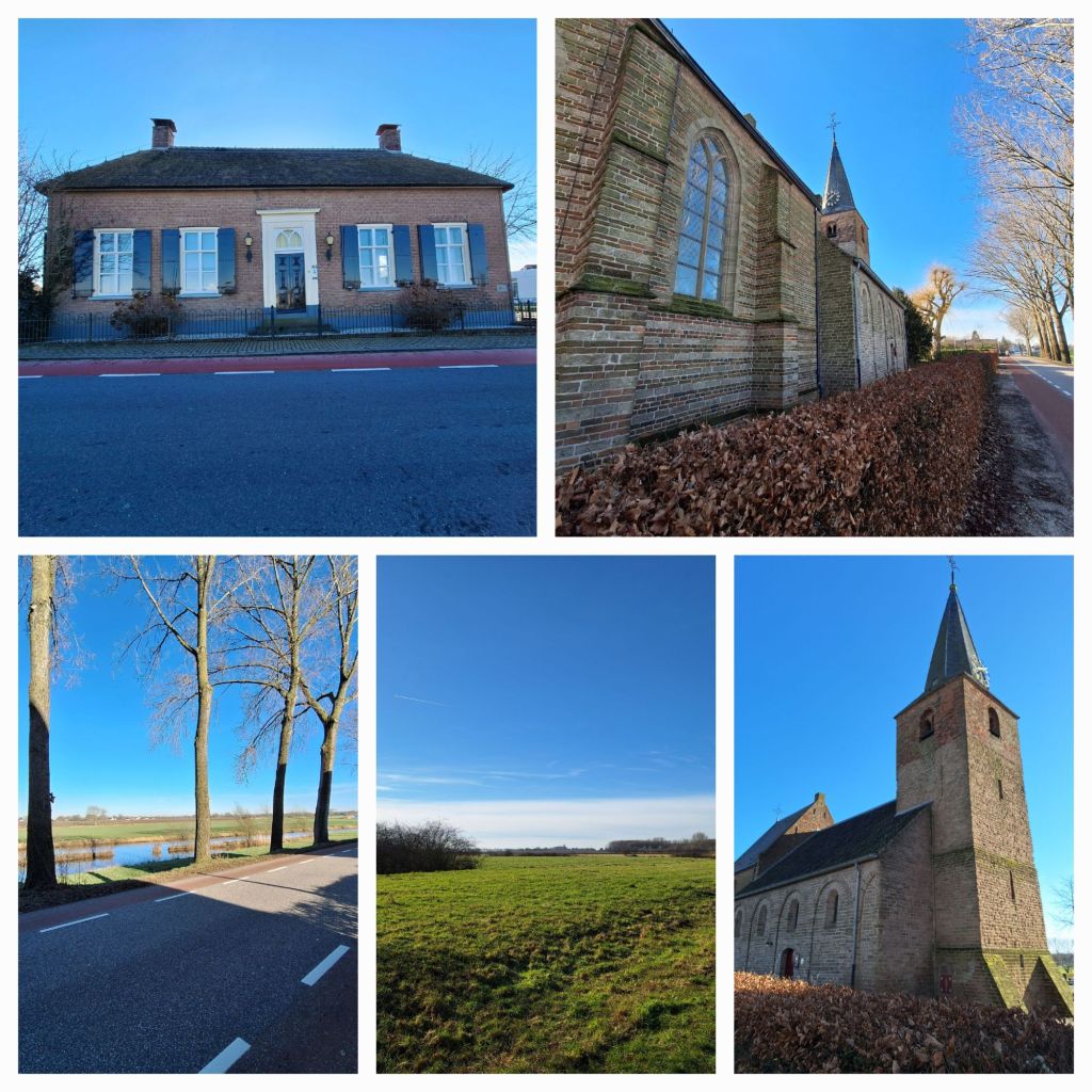 Bij boerderij de Heerlijkheid kom ik op de dijk. Die boerderij heeft die naam niet zo maar. Vlakbij, achter de kerk van Wadenoijen stond tot 1880 het huis Wadenoijen. Op die plek was al voor 1455 een kasteel gevestigd met heerlijke rechten waardoor dit gebied een heerlijkheid werd. (Heerlijke rechten zijn o.a. het visrecht, tolrecht, jachtrecht, windrecht.) In 1808 werd het herbouwd door Baron van Borssele (inderdaad uit Zeeland), maar in 1880 werd het voor de sloop verkocht. Het huis diende als steengroeve en in 1882 werd het terrein geëgaliseerd. En echt, je kunt niets meer zien, zelfs niet op luchtfoto’s.