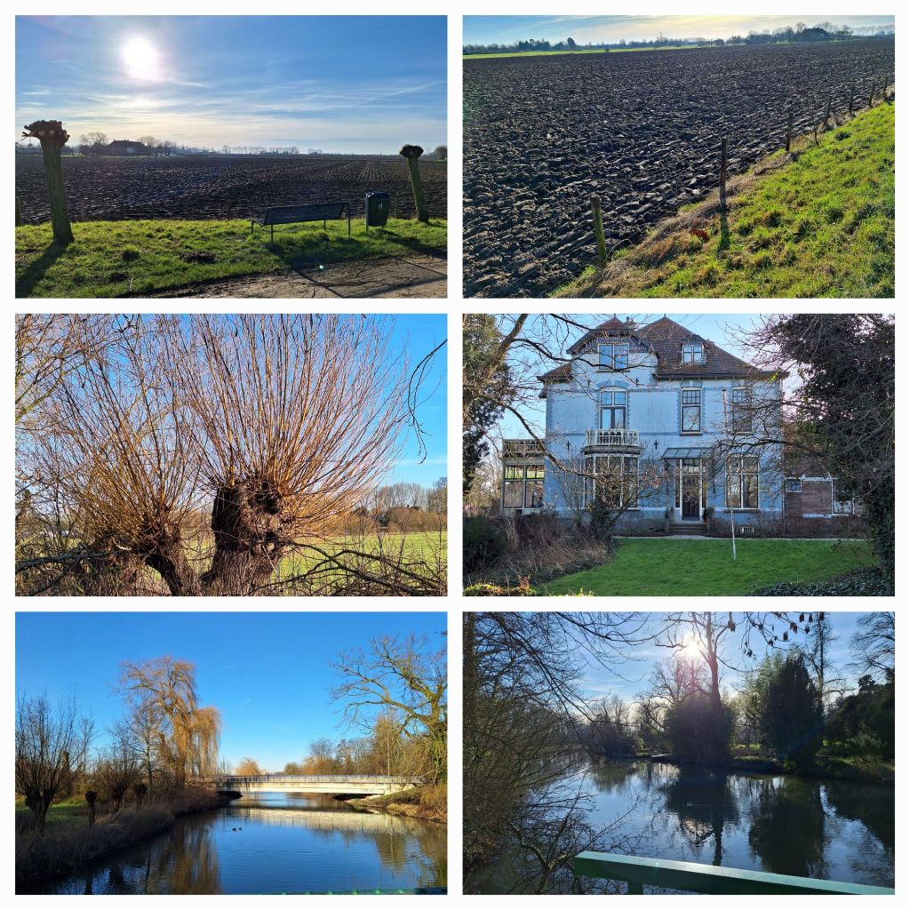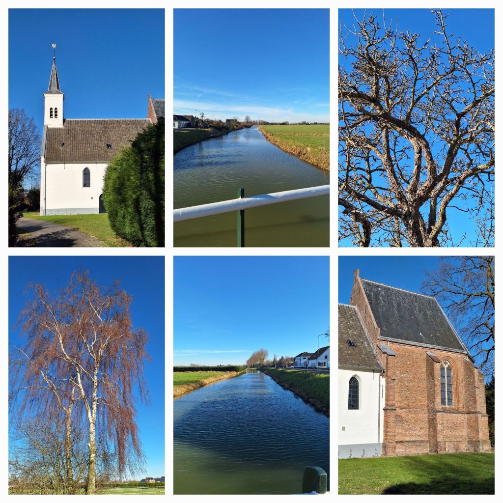 Ik ben maar een klein eindje van huis, deze zondagmiddag. Na de vorst van vannacht werd het zonnig en de temperatuur liep aardig op en ik besluit om een ommetje te maken.